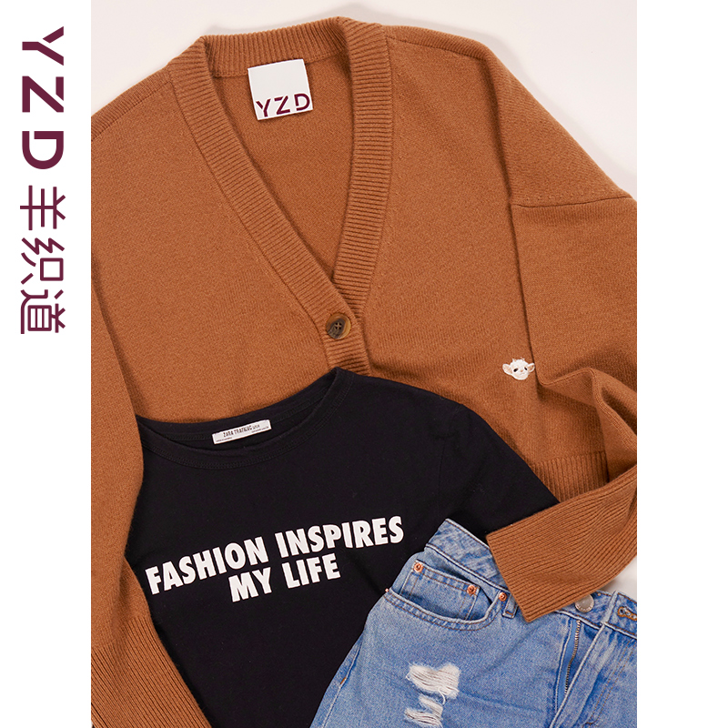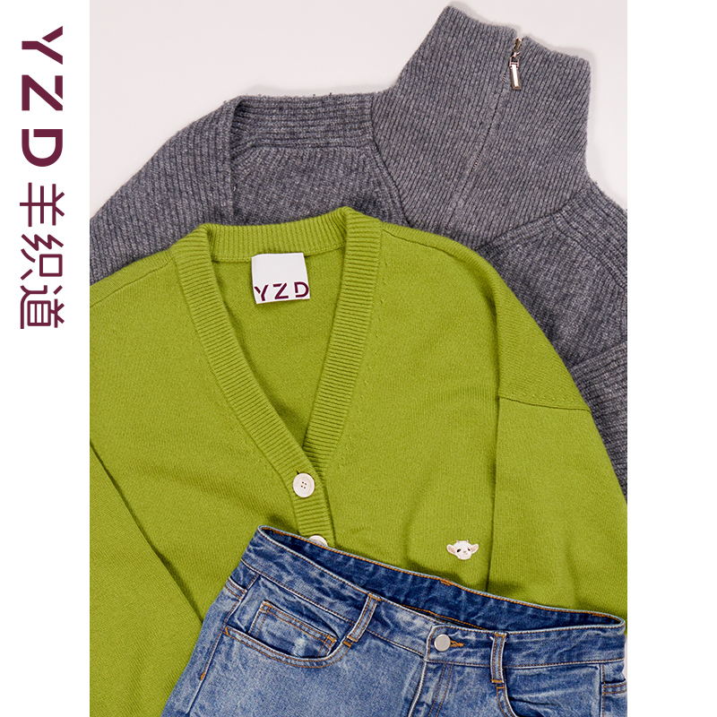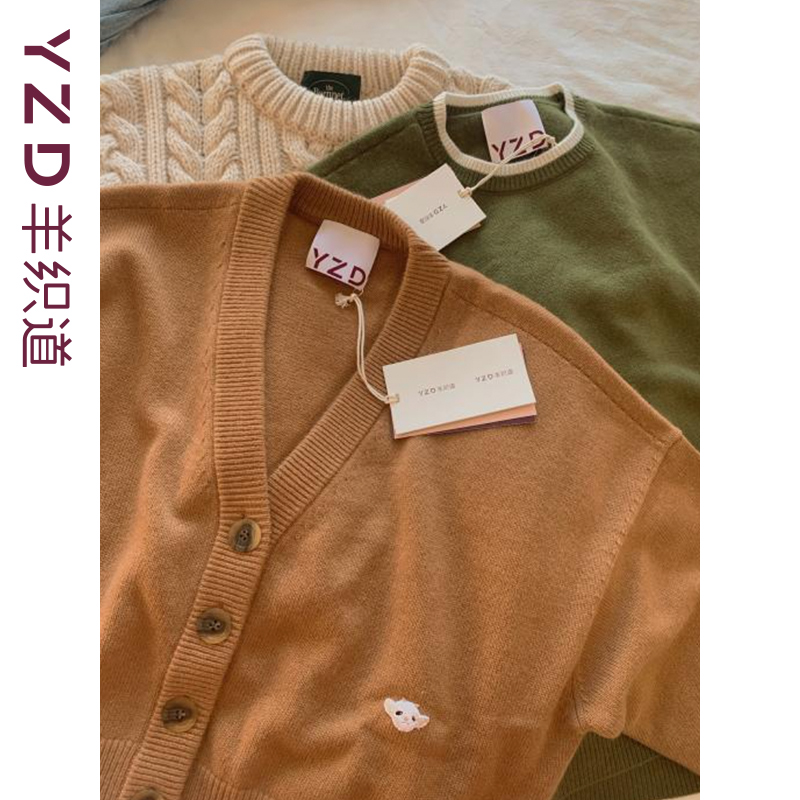 Sheep loom Double Milk Milk Bubble Short V collar box jacket Regular knit cardiovert wool blouse winter