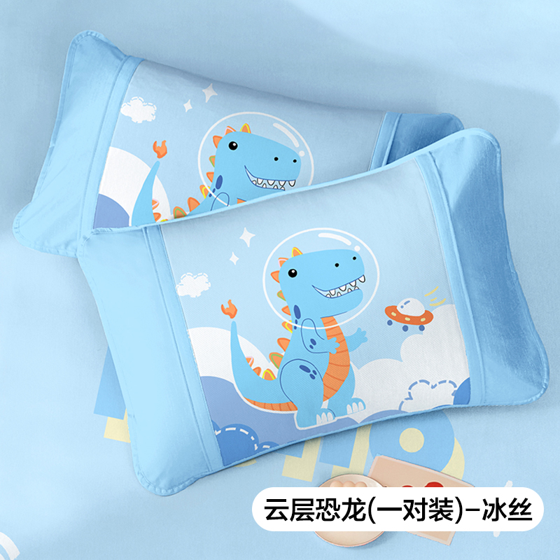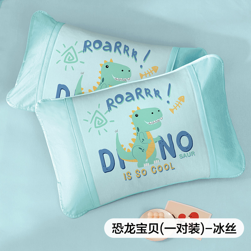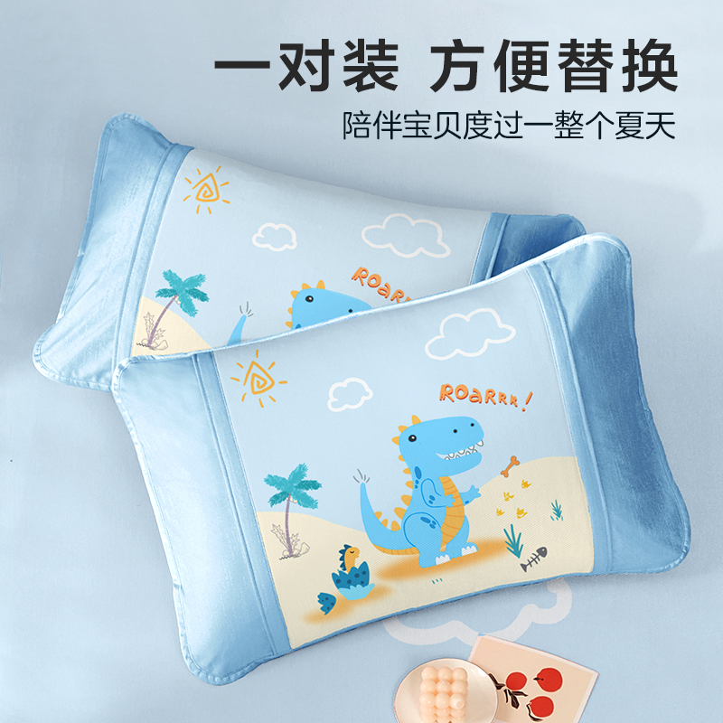 Boyo Children Ice Silk Pillowcase Pair Dress Boy Cartoon Dinosaur Summer Kindergarten Cool Mat Headgear 30 × 50