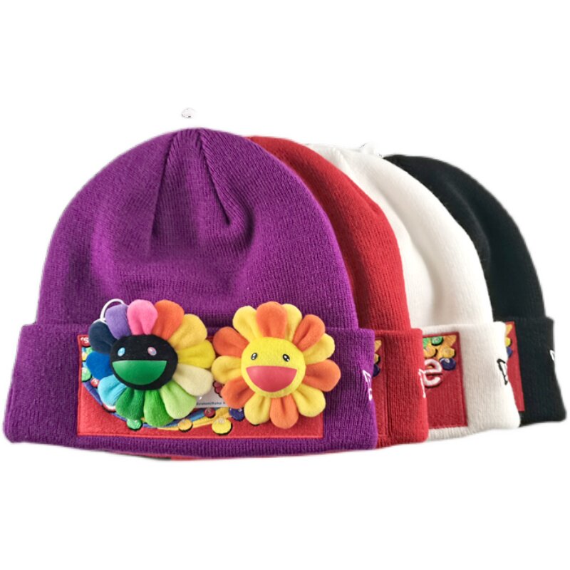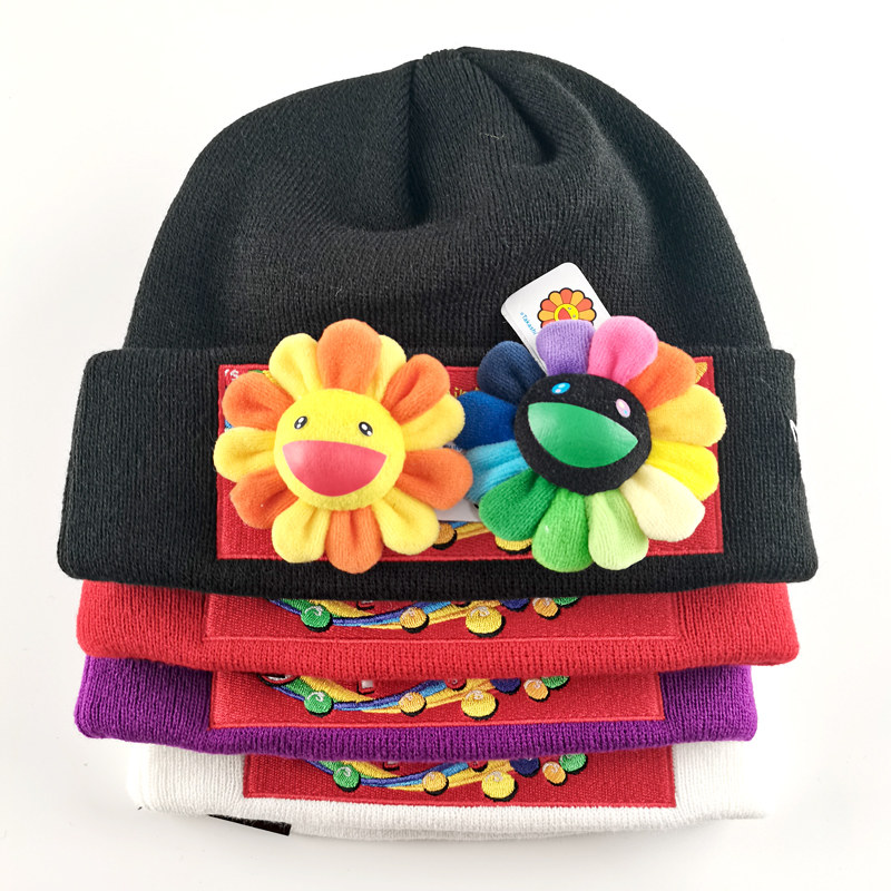 21FW Rainbow Sugar Embroidered Cold Cap BOXLOGO BEANIE Rainbow Bean Knit Cap Black Hair Line Hat Winter
