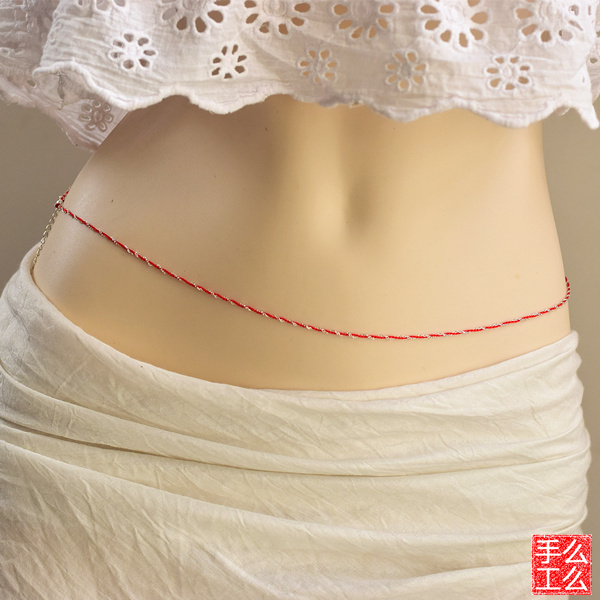 Original photosensitive body chain thin belt red rope waist chain female sterling silver gift foot silver bikini navel chain