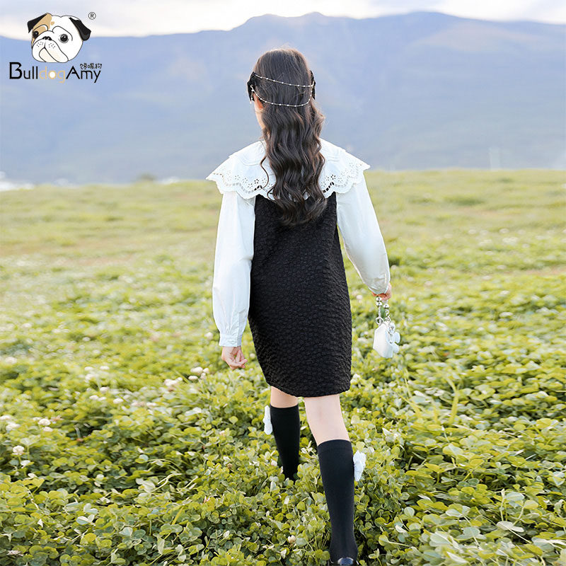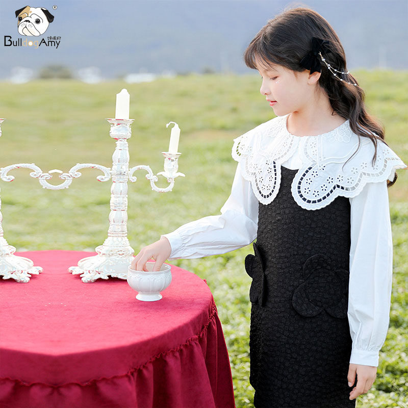 Girls with dress 2023 new fashionable children's black carving princess dress in spring and summer