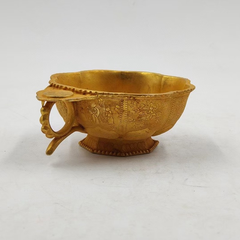Antique Miscellaneous Collection Antique Datang Zhenguan Year Made Gilt Cup Wine Glass Home Craft Decoration