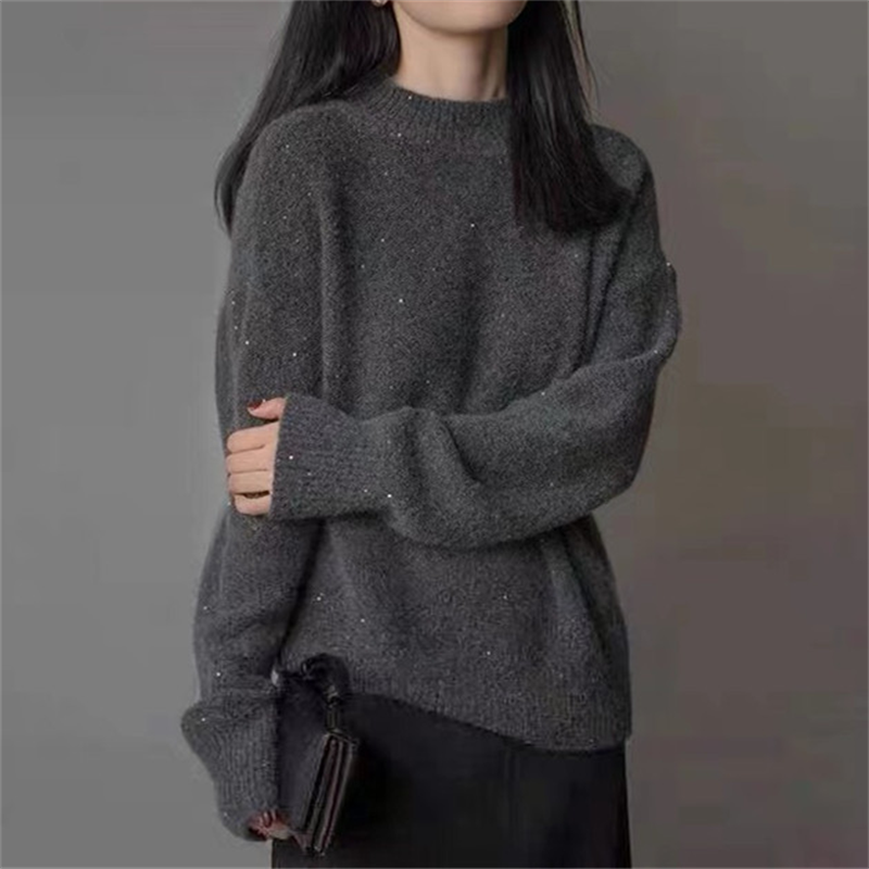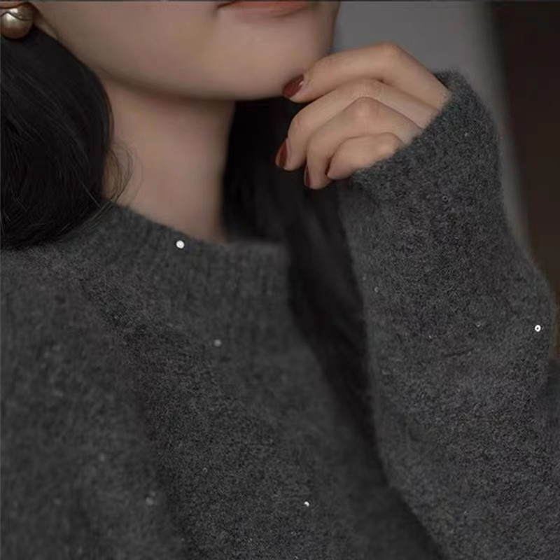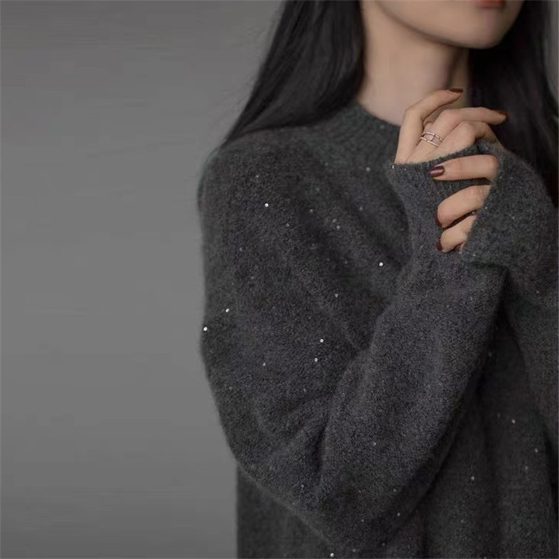 Raccoon velvet Starry Sky sequin sweater women in early spring 2022 base shirt loose padded soft glutinous knitted outer wear