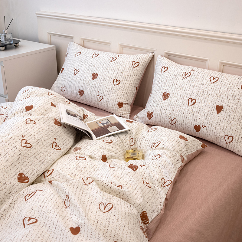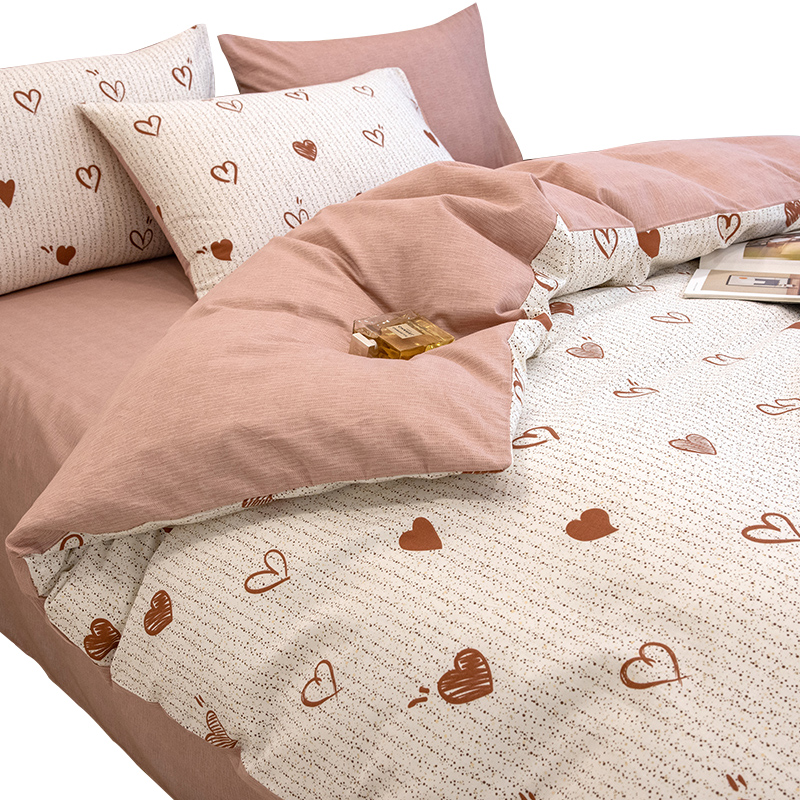 INS Nordic Bedding Four-piece Set Pure Cotton 100 Bed Single Duvet Cover Student Dormitory Little Love Three-piece Set