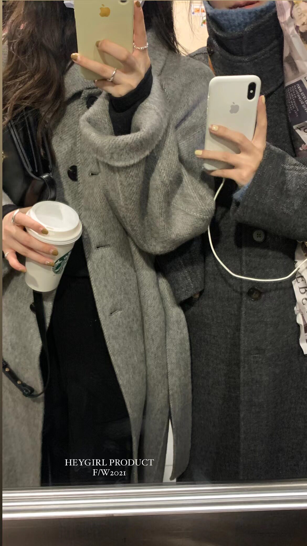 Double face cashmere big coat female medium long version Korean system superior grey double face Son Big Coat Female Winter Sheep Camel Fuzz Jacket