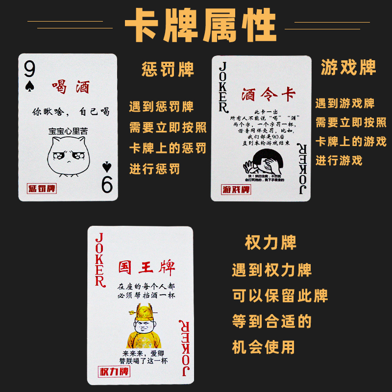 Plastic Accompany Wine Poker (1 side) accompanied by wine poker (1 side) People brand (1 side) Punisher (1 deputy) boss driving to (1 side) Find your sister (1 deputy) optional (2 Deputy)