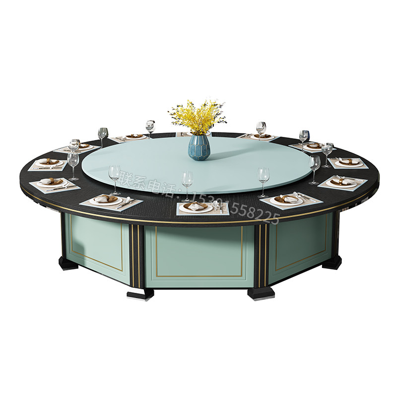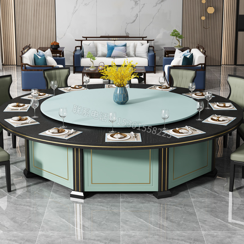 New Chinese style hotel dining table big round table box with electric turntable automatic rotation 15 20 people 2 meters custom