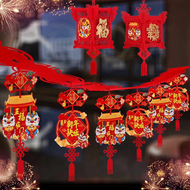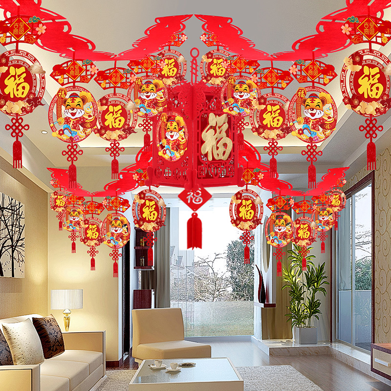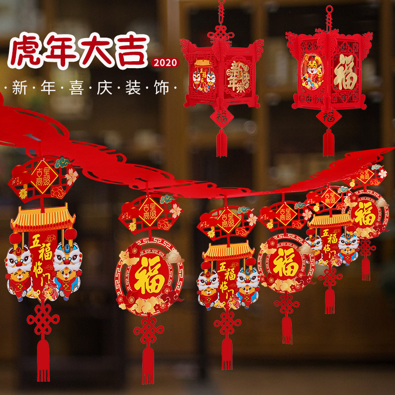 2022 Tiger years New Year's Day La Flower cartoon Creative New Year Shopping mall Kindergarten Room Inside And Outside Scene Arrangement Decoration Hanging Decoration
