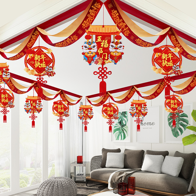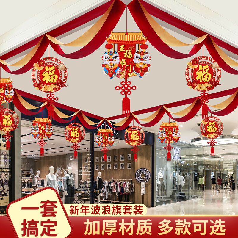4 wine red wavy flags, blessing pendants*6, 4 five wine red wavy flags, blessing pendants*6, 4 million wine red wavy flags, happy new year*6, lucky and auspicious wavy flags*4