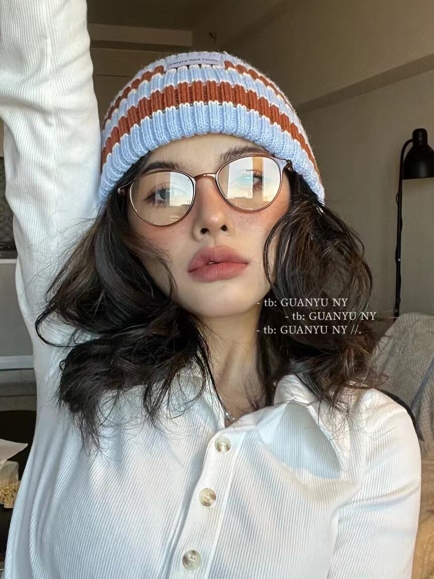"About" Korean ultra-light TR90 men and women myopia glasses brown mirror frame round face coffee color anti-blue light glasses