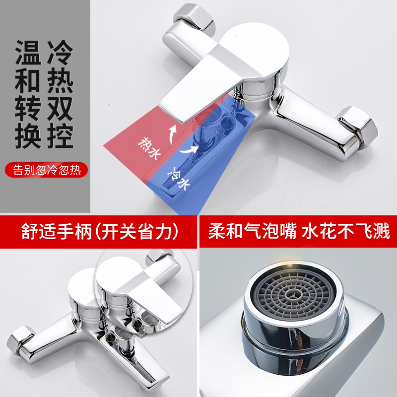 Full copper water mixing valve hot and cold tap bathroom water heater bath shower bath shower shower Ming fit triple tap