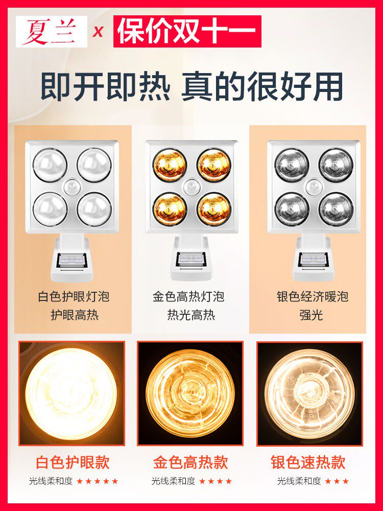 Yuba wall-mounted no-punching lamp warm wall-mounted home bathroom bathroom bulb heating lamp bathroom waterproof and explosion-proof