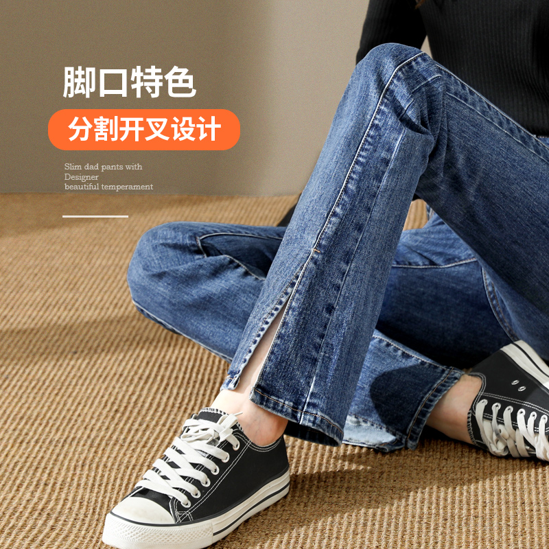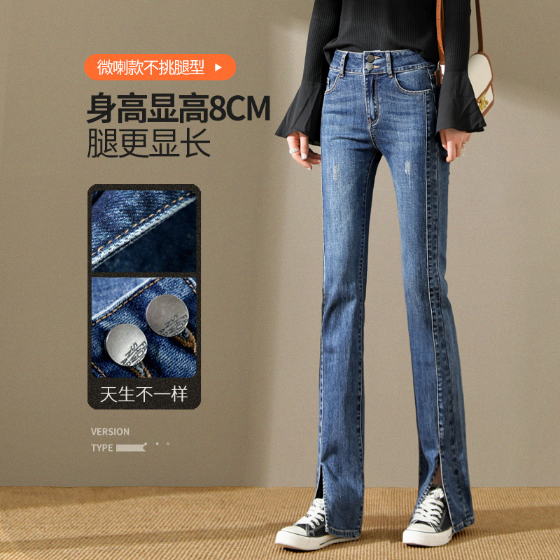 Open Fork Microlao Jeans Woman 2022 Spring Autumn New Horn Pants High Waist Display Slim Straight Drum Lengthened Tug Pants