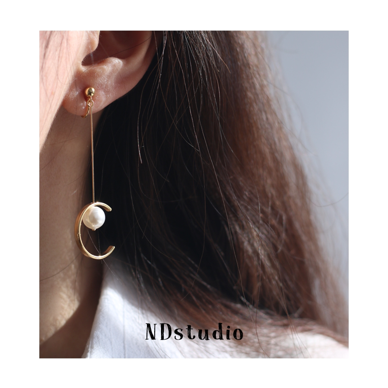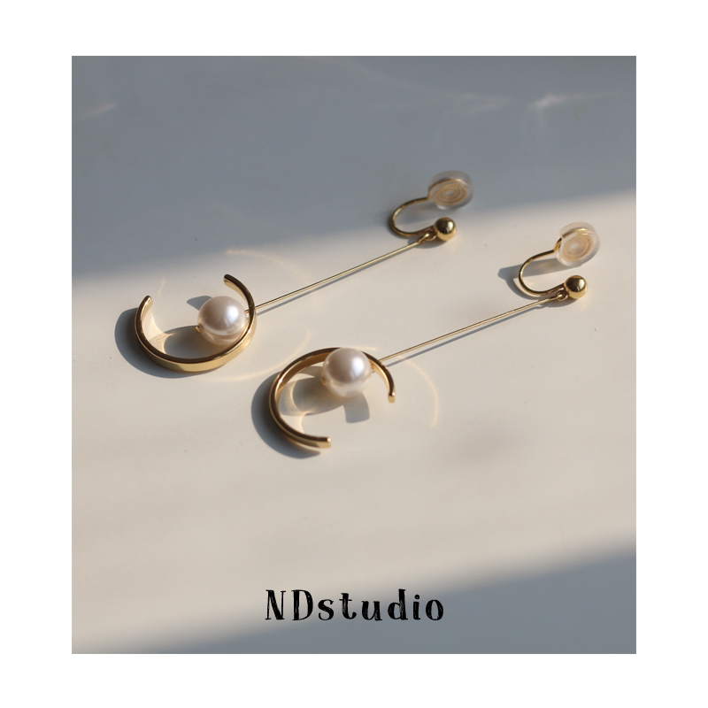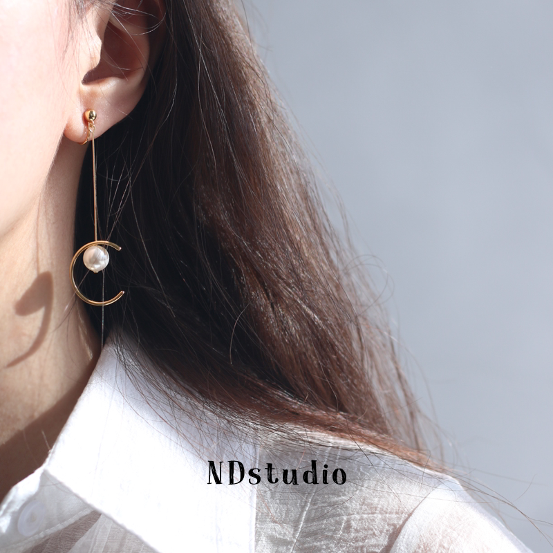 ND < just good meets you > autumn winter long version temperament female pearl ear clip without earhole flow Su light lavish wind