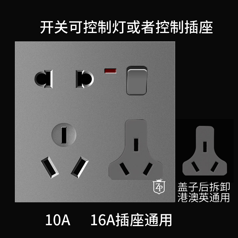 86 - type gray multi - functional eight - hole socket port with switching power supply opens 88 - hole 16A panel