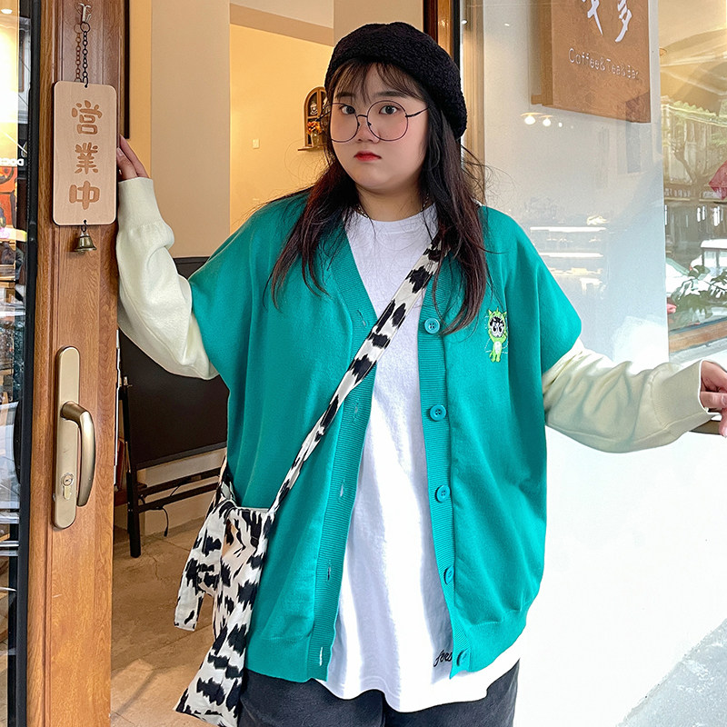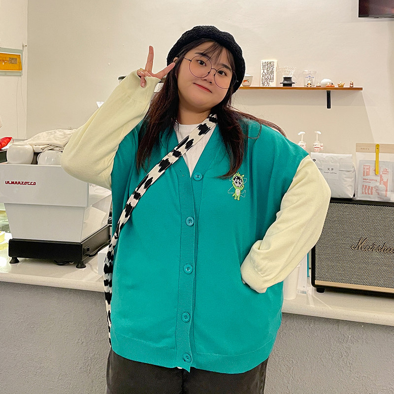 YUZI Fish House 2021 New Large Cover Knitted MM Fall Winter V - collar Color Top Color