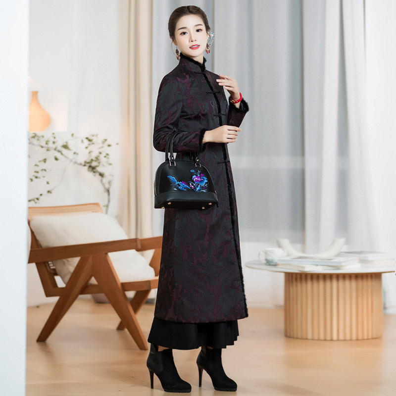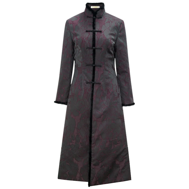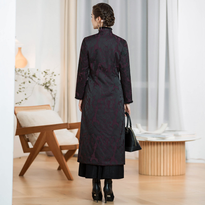 Chinese classic cheongsam windbreaker mid-length version winter 2021 new quilted thickening slim slim Tang suit jacket