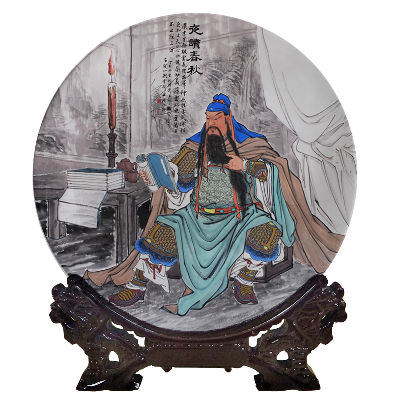 Jingdezhen Ceramic disc Wenwu Kuanghong sitting like a night reading Spring and autumn dedicated to the opening of the Statue Opening Gift Hyun Guan Pendulum