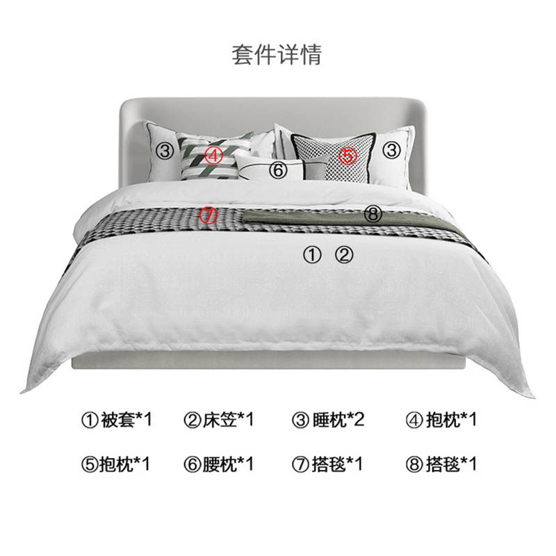 9 pieces (including all core) 4 pieces (including all core) green towel 90x240cm gray towel 65x240cm white cup pillow (including core)45x45cm gray cup pillow (including core)