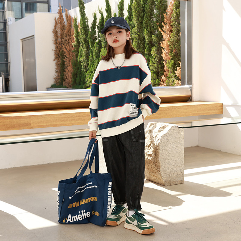 Girl's thick T-shirt 2022 Spring loaded with new Korean version CUHK Scout striped long sleeve blouses child loose undershirt