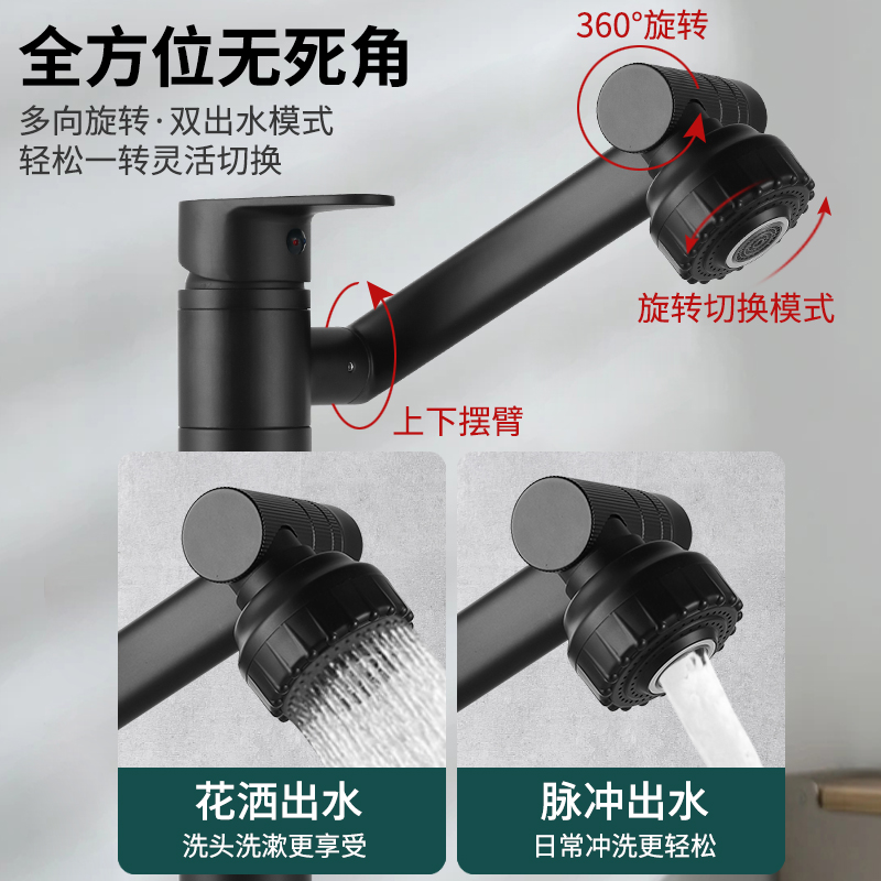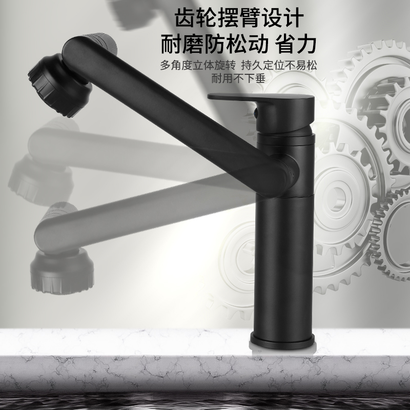 Black gold tap rotating single hole pulling single-cold faucet single hole