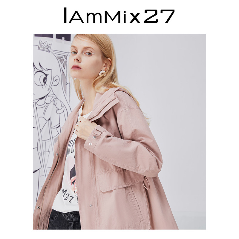 IAmMIX27 Spring Lianhood Hood Maid Short small sub loose Leisure Inn Wind Brief about 100 hitch jacket woman