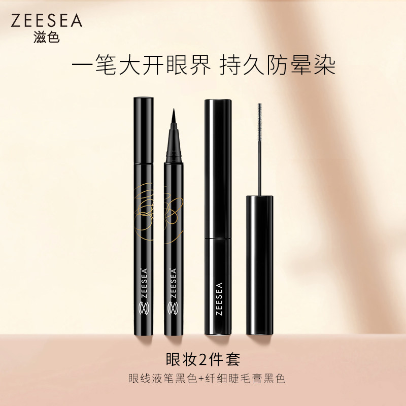 (Eye Makeup 2-Piece Set) ZEESEA Nourishing Color, Slender, Curly, Not Smudged Mascara, Eyeliner, Eye Set