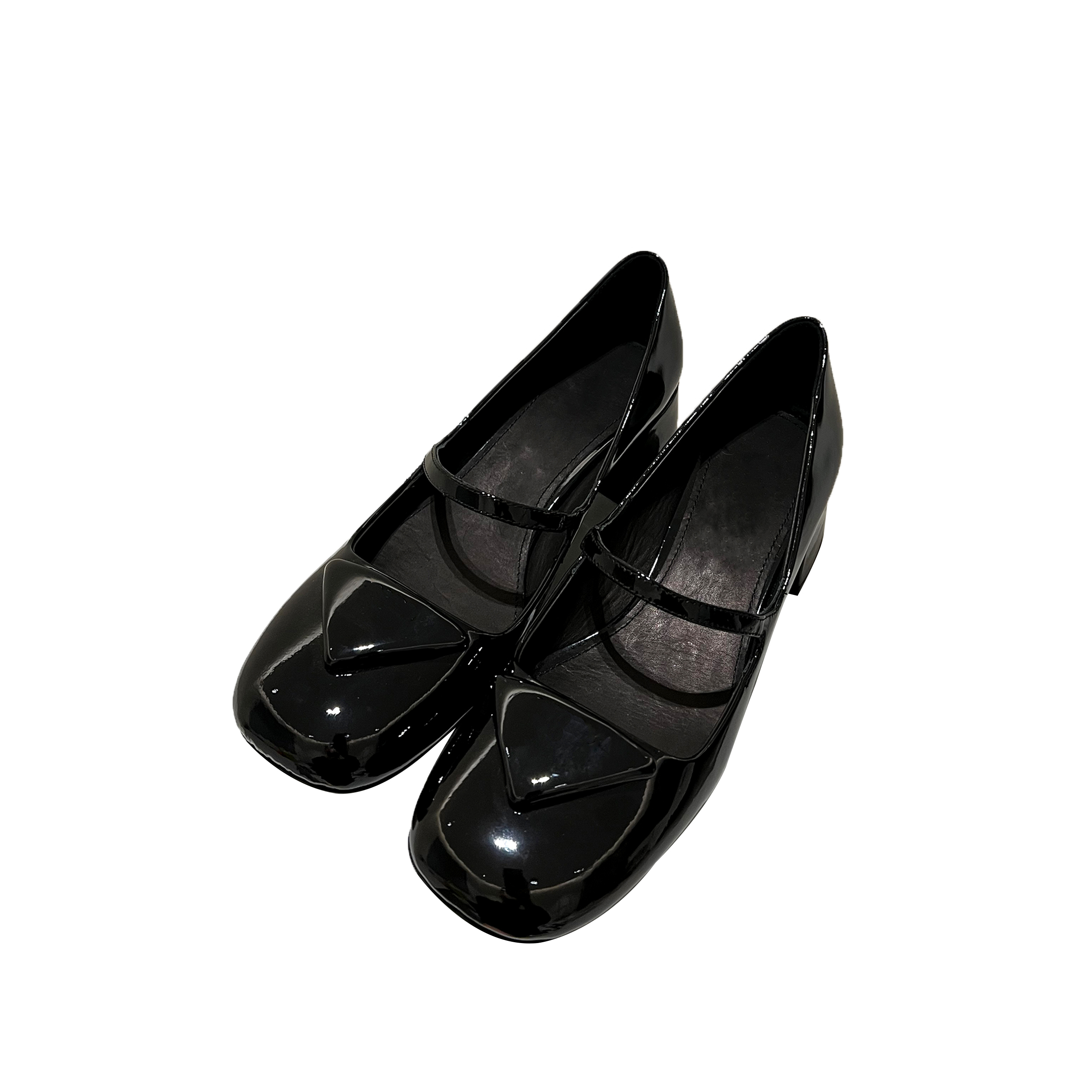 TAOHUAHUA12 12 new products, too good ~ 2022 early spring thick heel triangle logo Mary Jane shoes women's shoes