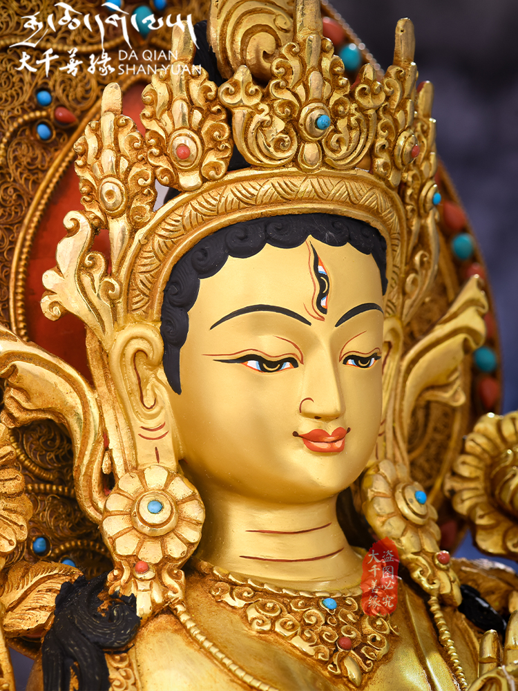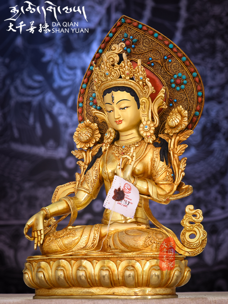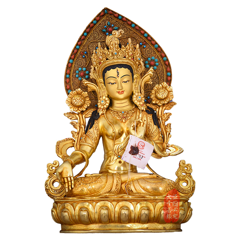 Nepal imports pure hand - made copper - gilded 10 inches white - degree female Buddha statue Tibet 1 foot copper statue
