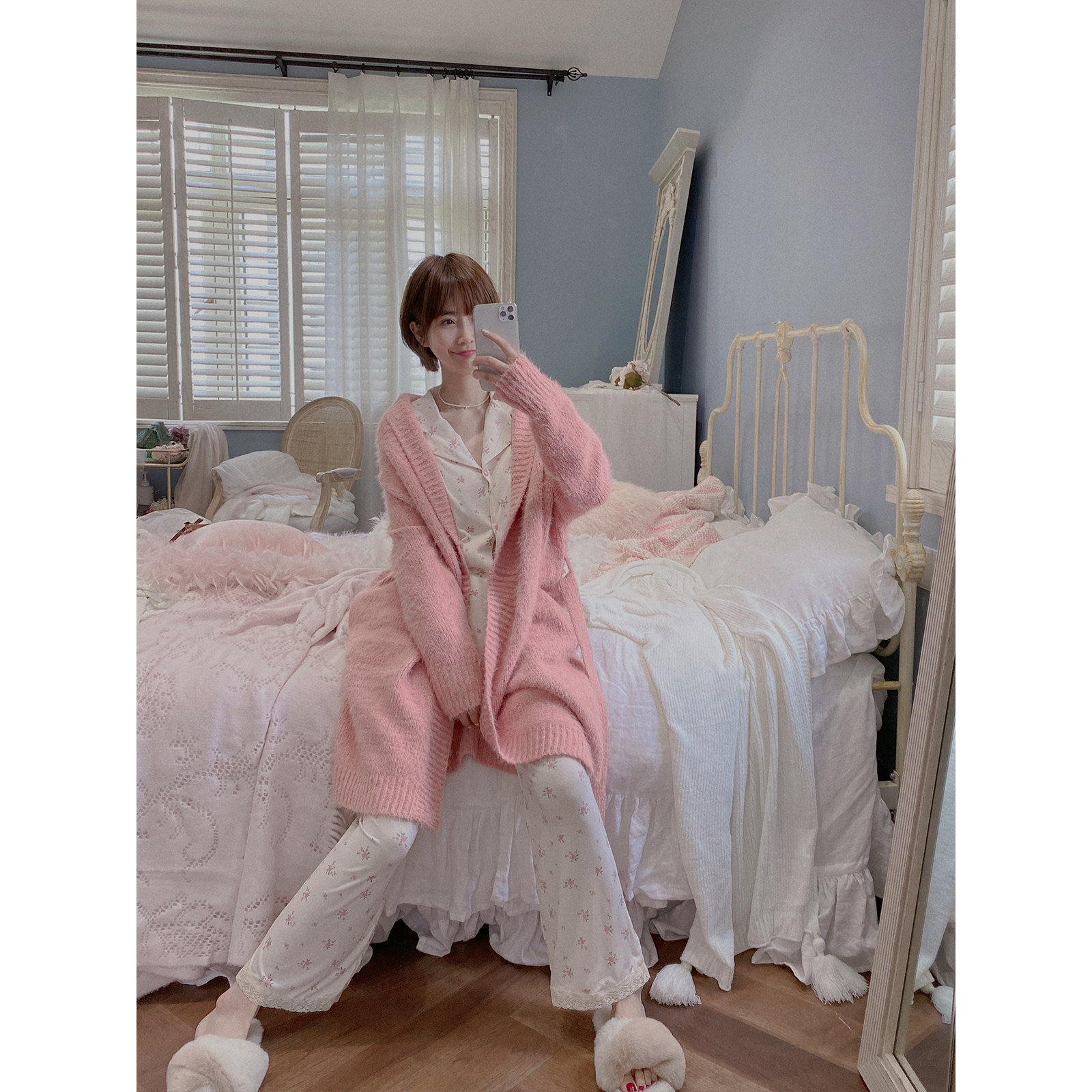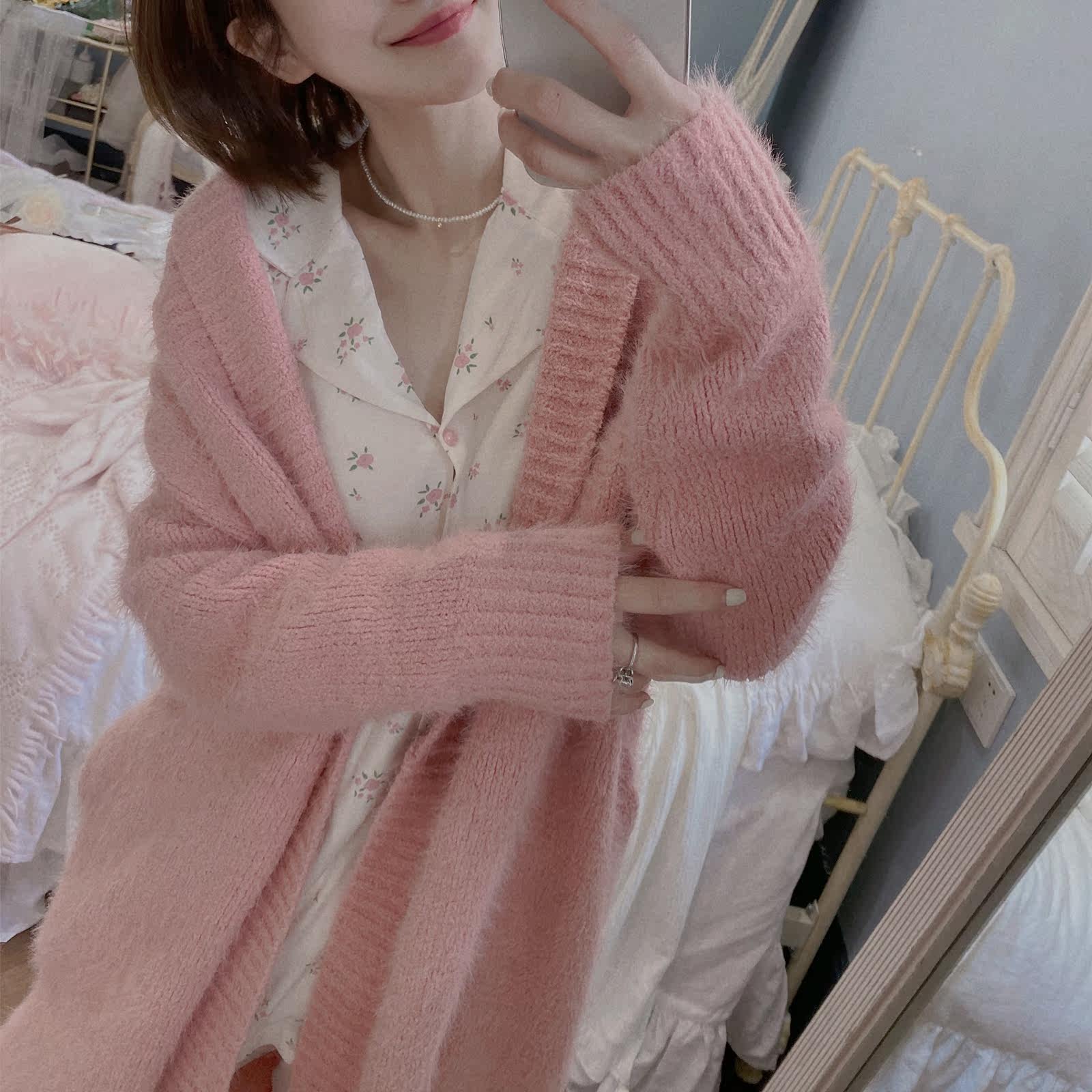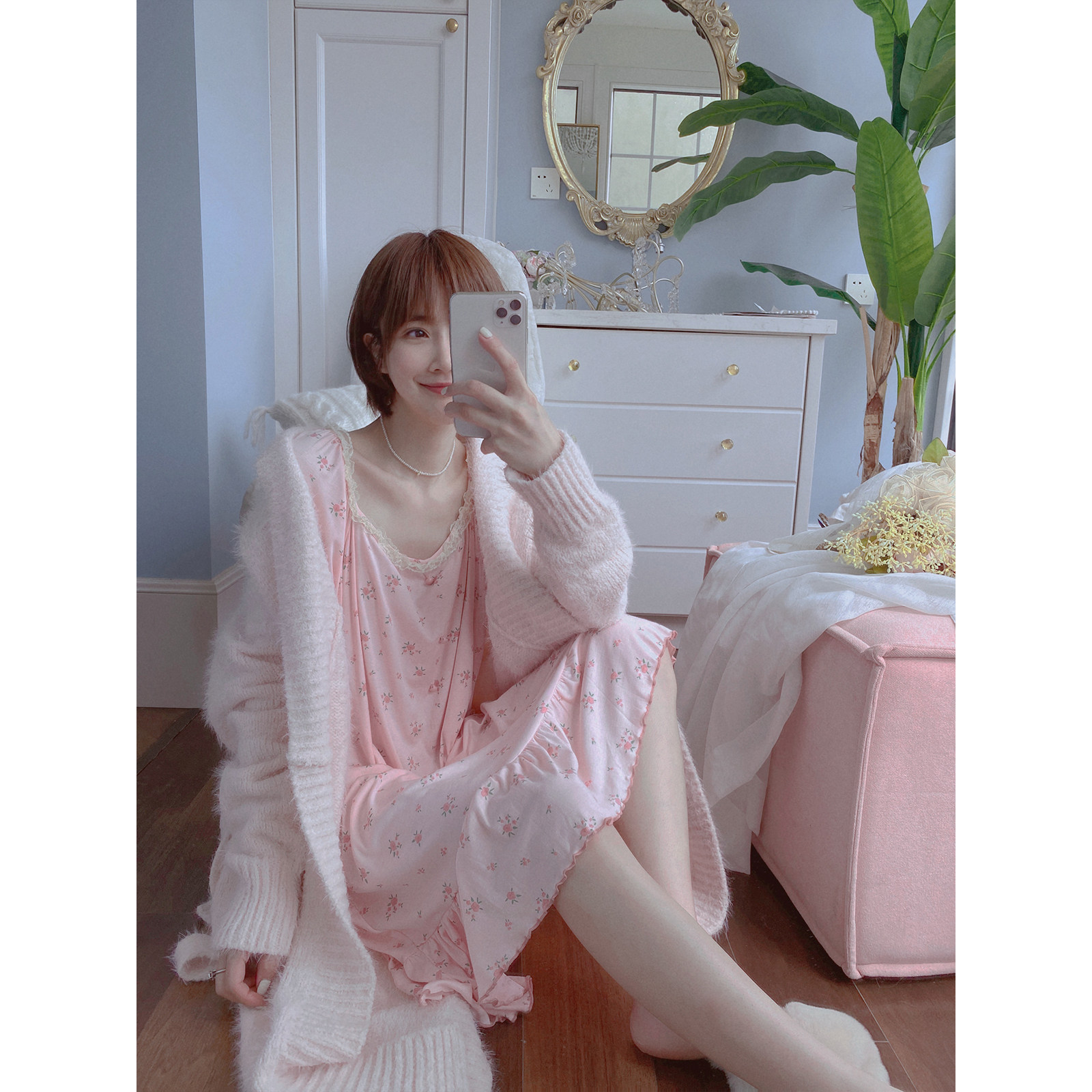 Domestic sweets autumn winter soft dressing robe woman medium-long edition pure colored sweater long sleeve warm bathrobe imitates sable fur home suit