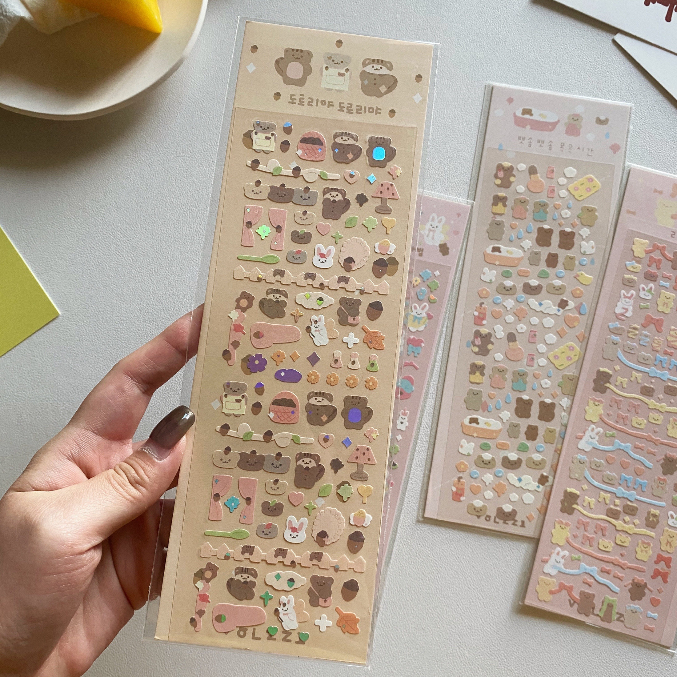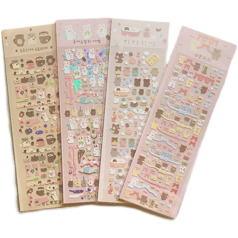 South Korea S Mini Bunny Rabbit Small Bear Laser Flash Card Sticker Chasing Starry Small Card Decorative Diy Hand Bill Standout