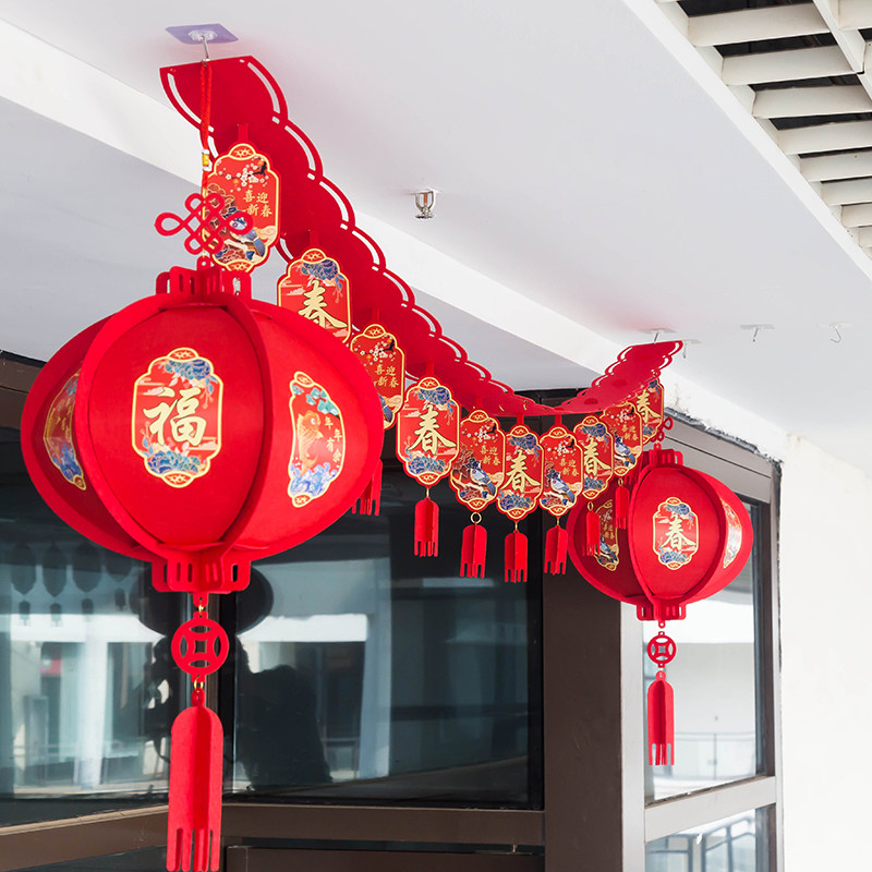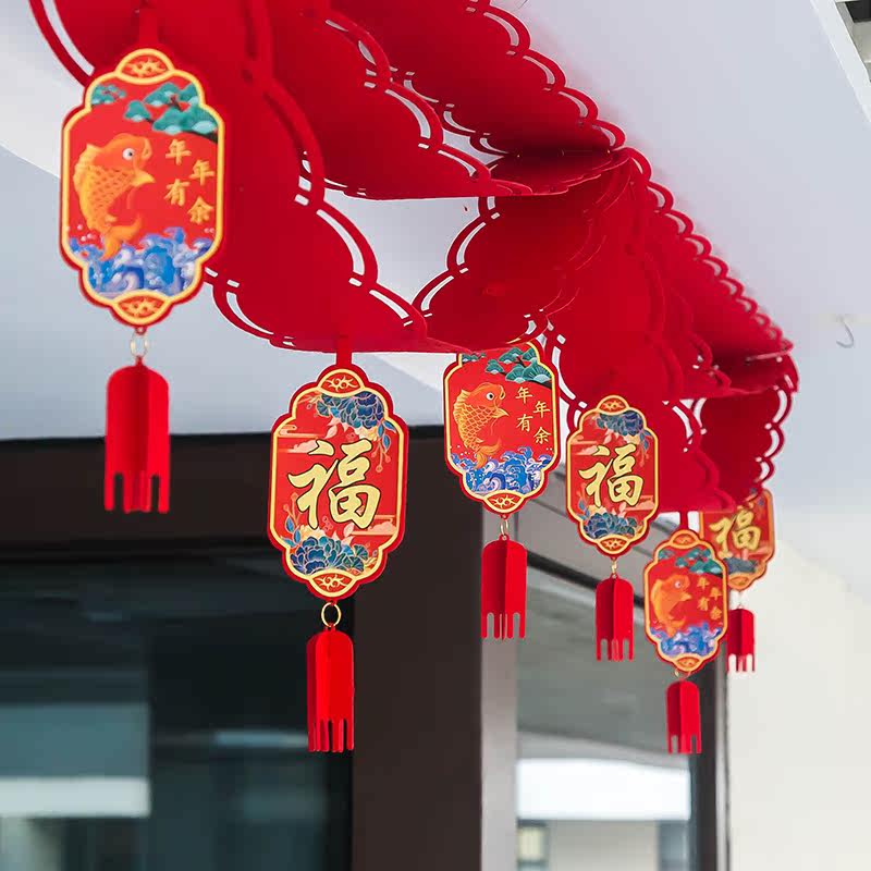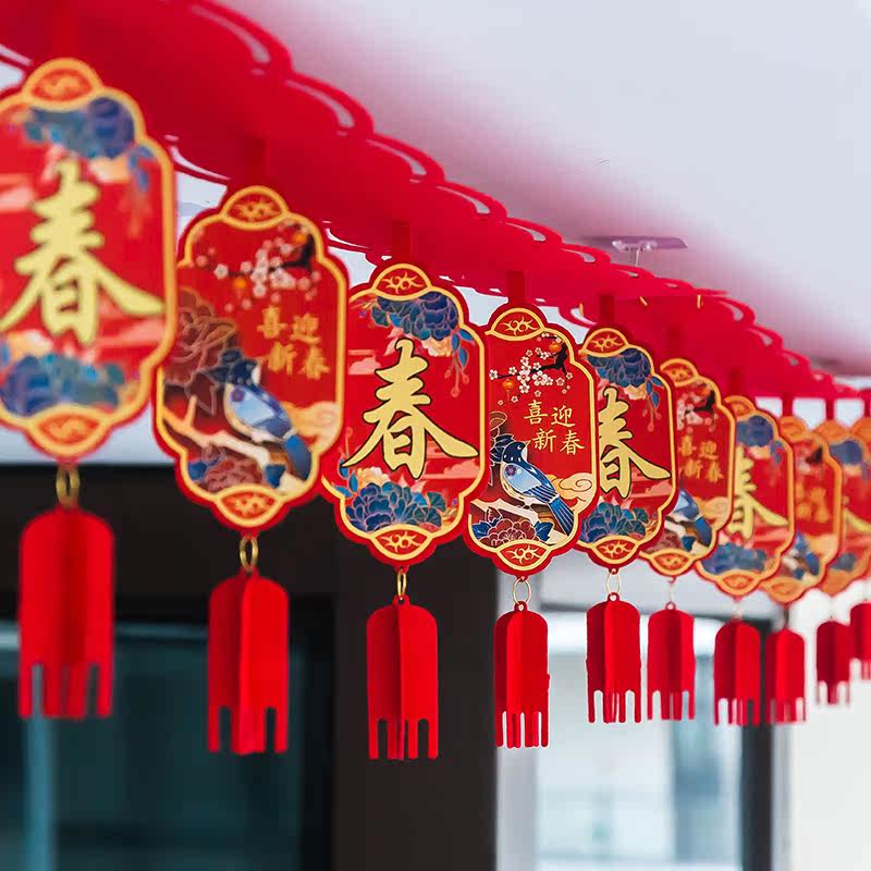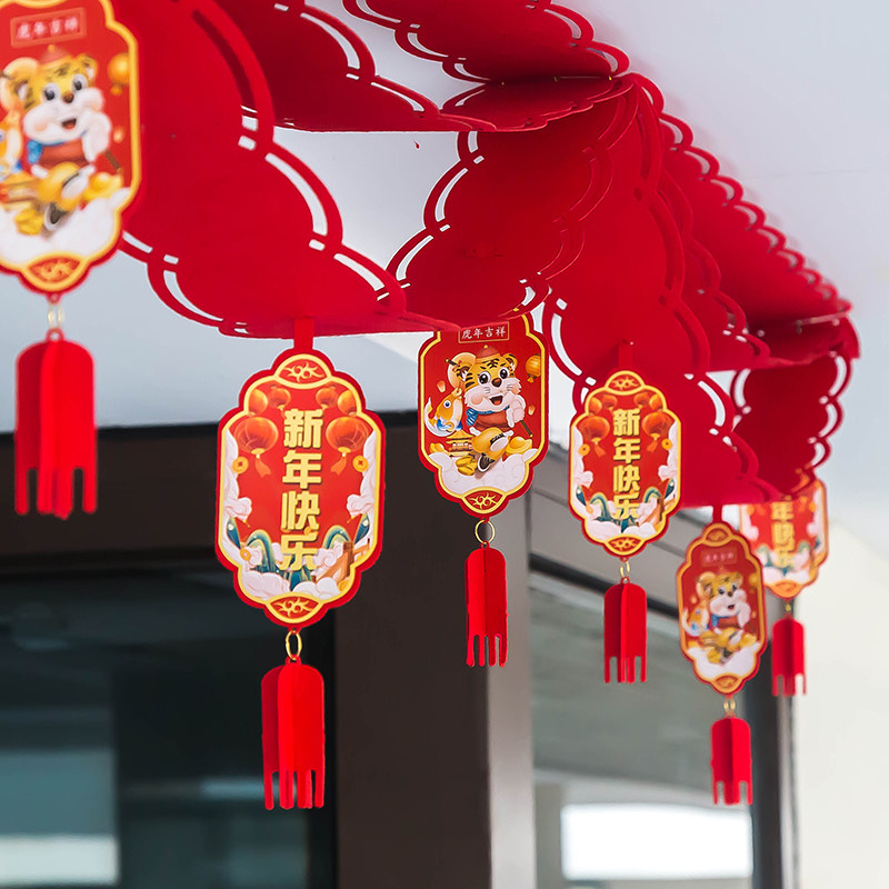Year of the Tiger Spring Festival decoration pull flower wave flag 2022 New Year's Day shopping mall shop decoration layout New Year jewelry store dress up