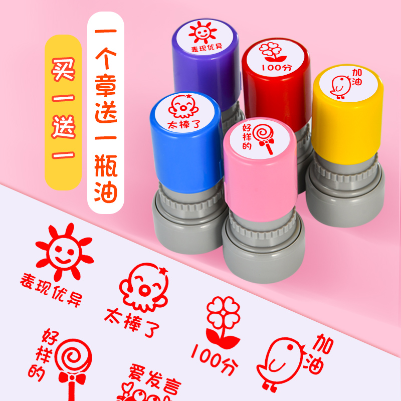 Teachers Use Seal Batch to Approve Homework Children Cartoon Stamp Reward Elementary School Students Kindergarten Language Math Praise Encourage Comment 100 Refueling with Progress You're Very Excellent Chapter Press Pressure