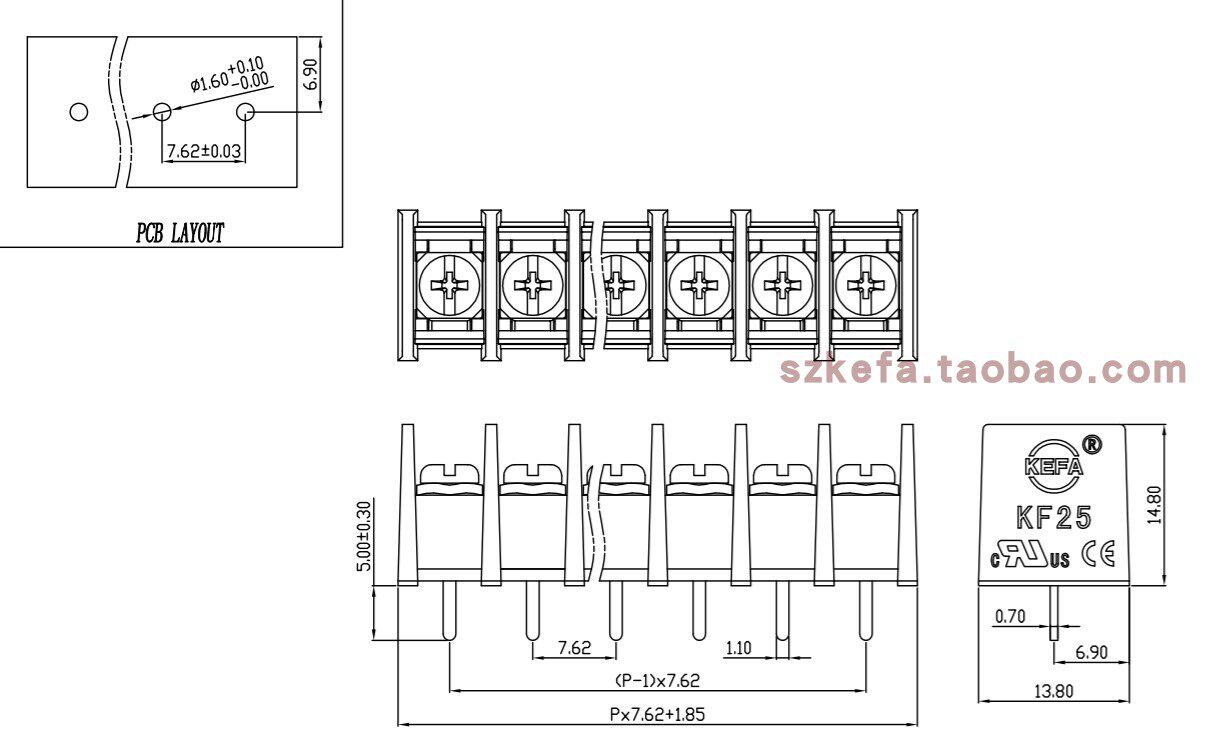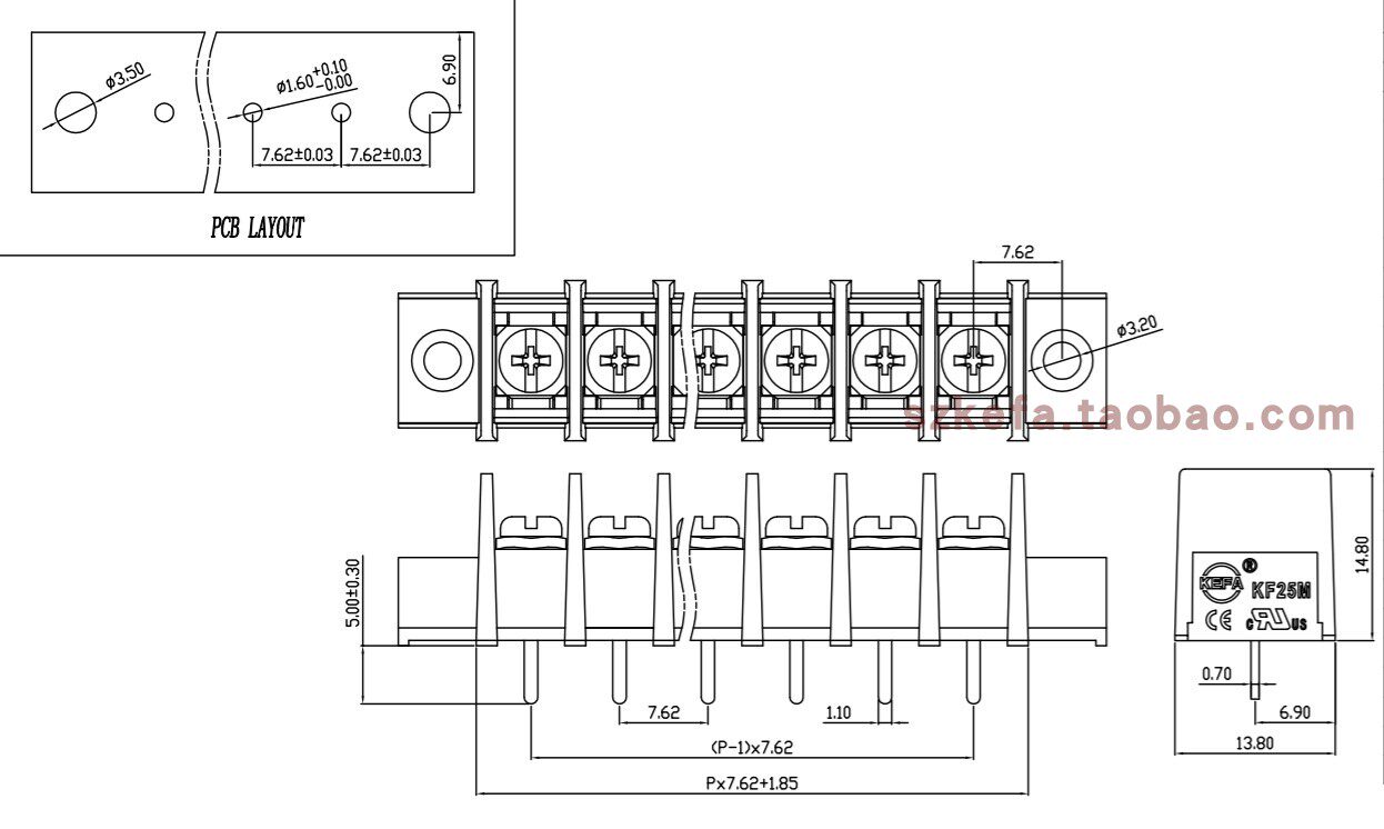 KF25C-7 62mmKF25CM-7 62mm with positioning wiring grid terminal block