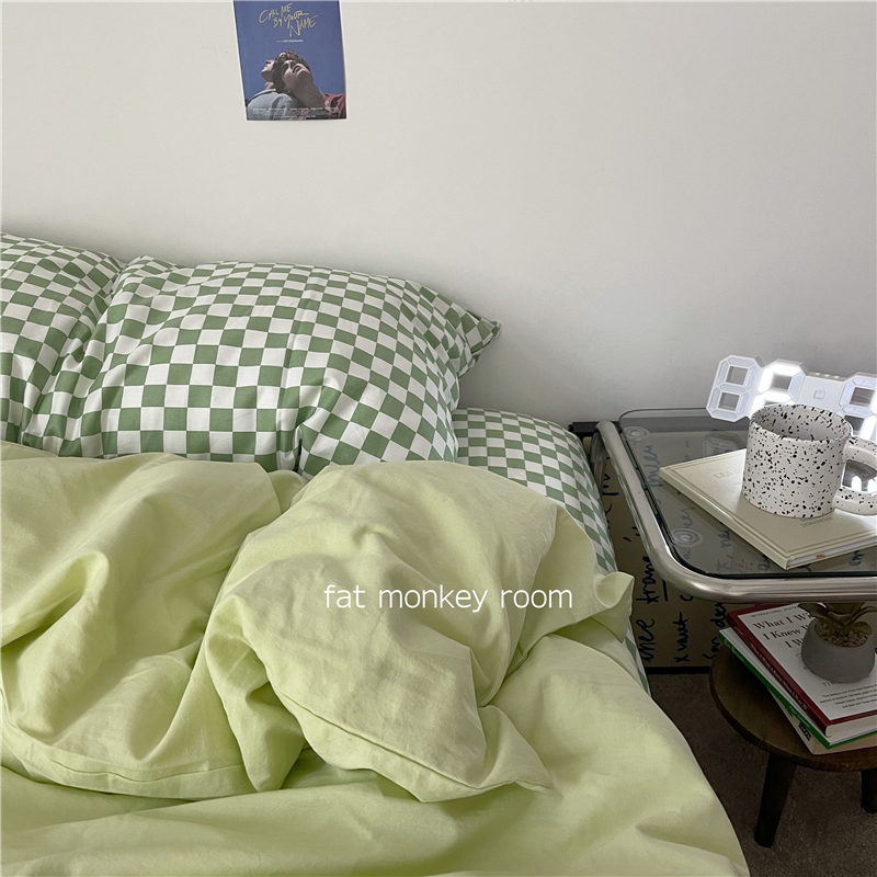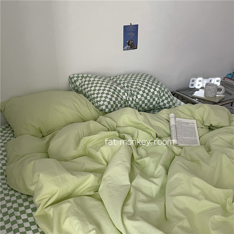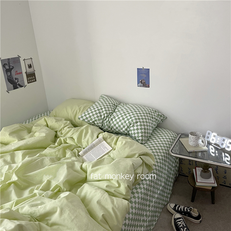Three points to ten | ins Japanese checkerboard mix and match cotton combed and washed bedding four-piece three-piece set