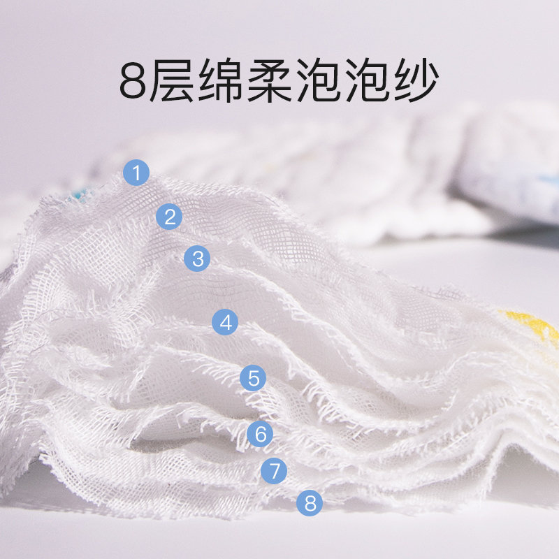8 layers of blister yarn (fruit) 4 strips 8 layers of bubble yarn (animal) 4 strips of 6-layer jacquard gauze (pure colour) 3 strips of 6-layer jacquard gauze (flower colour) 3 dress
