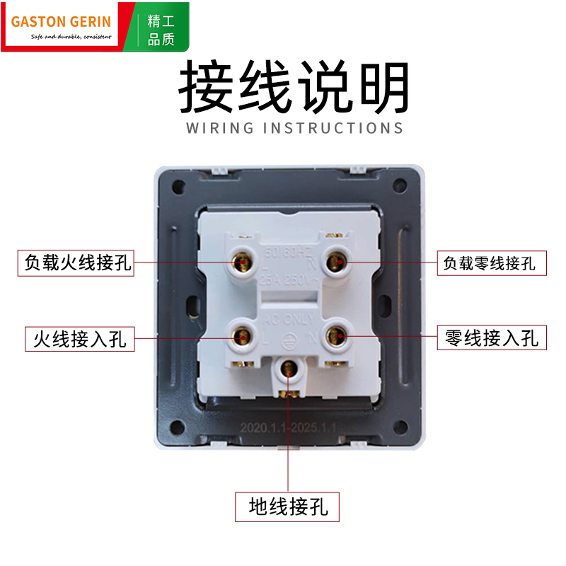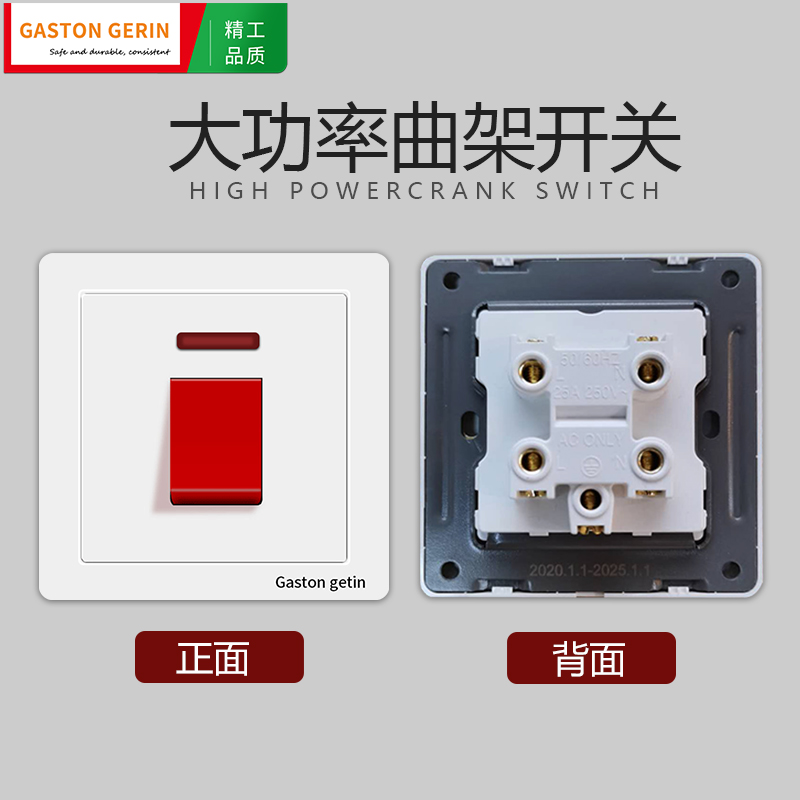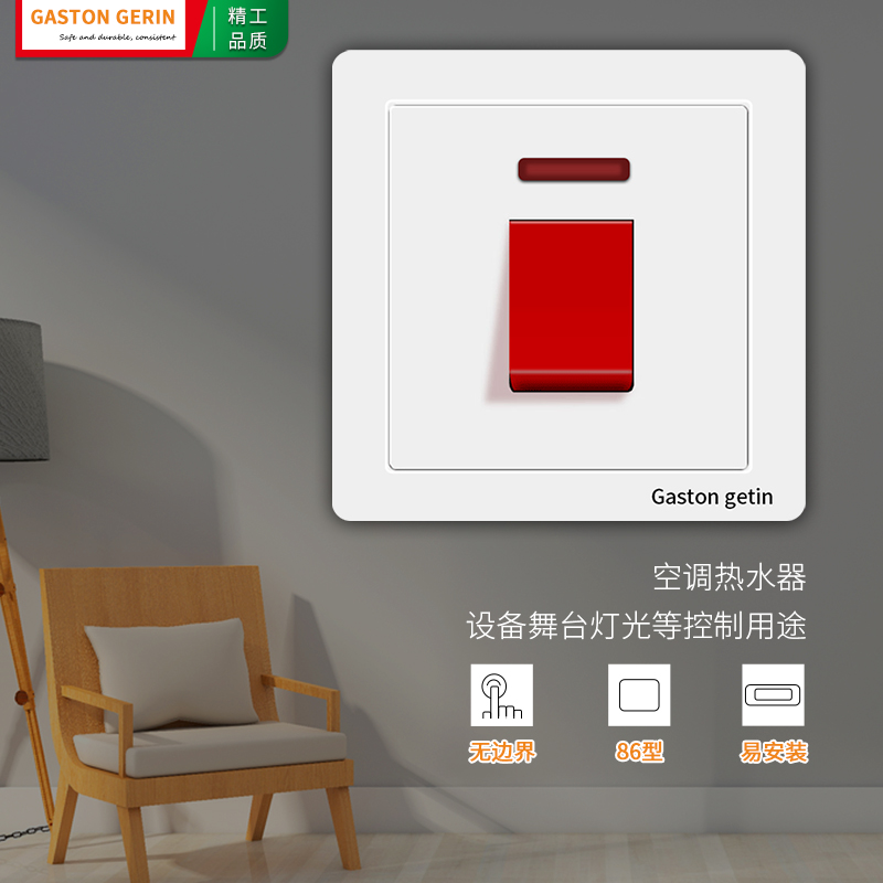 Type 86 concealed curved frame switch 25A high-power air-conditioning water heater double-break fire wire zero line cabinet switch panel