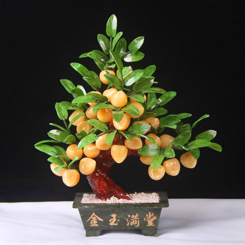 Natural Yellow Jade Pantao Peach Tree Living Room Fairy Peach Family Residence Decoration Pint Bou Ancient Shelf Jade Jade Sculpture Upscale Suo Suyu Pendulum