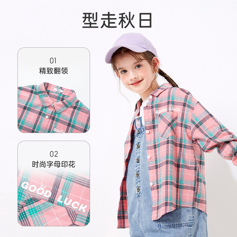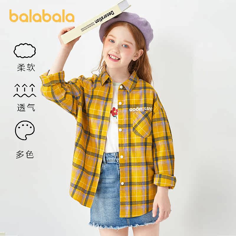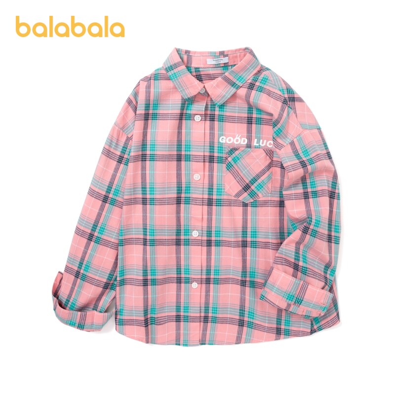 Bala Balara Girl Long Sleeve Plaid Shirt CUHK Tong Pure Cotton Shirt Child Blouse 2022 Spring Autumn New Tide