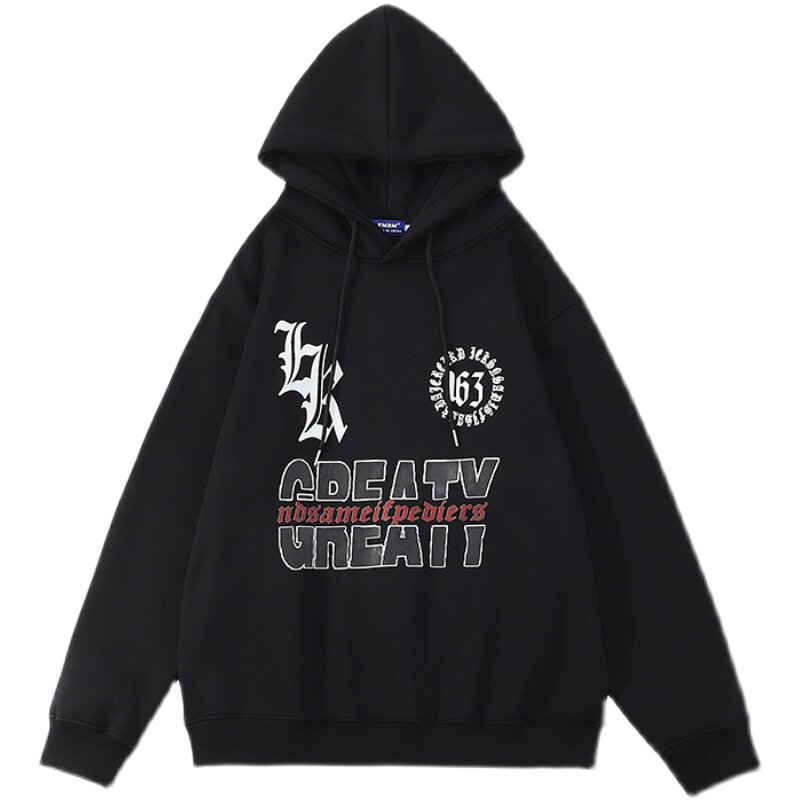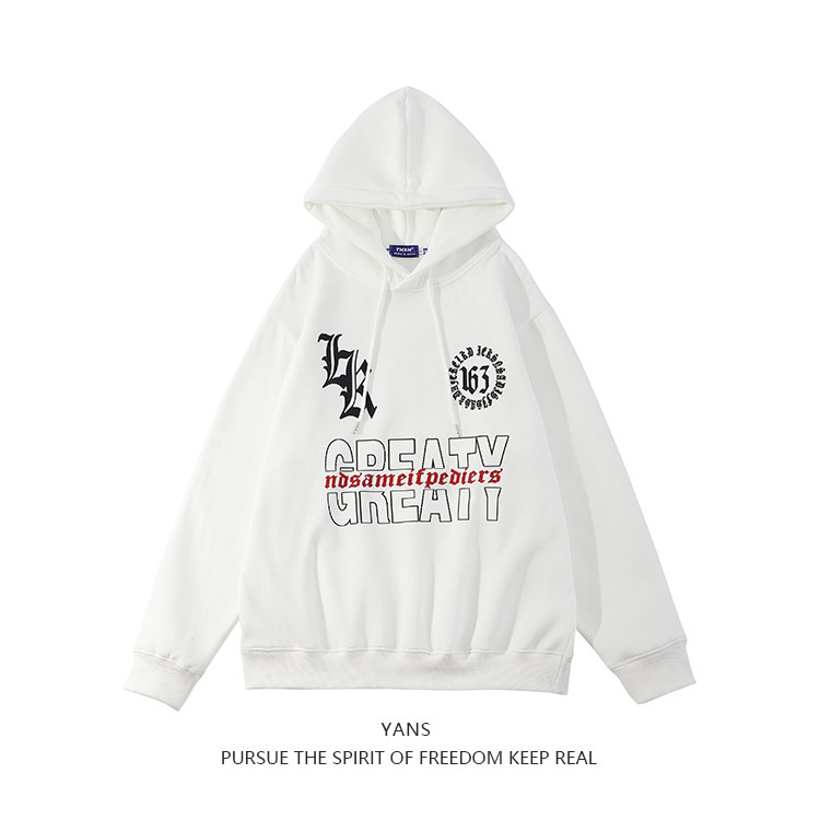YANS American retro street tide brand Gothic letter printing loose hooded sweater couple plus fleece hoodie ins