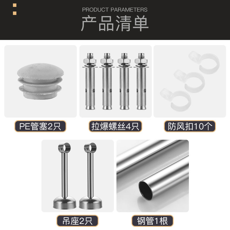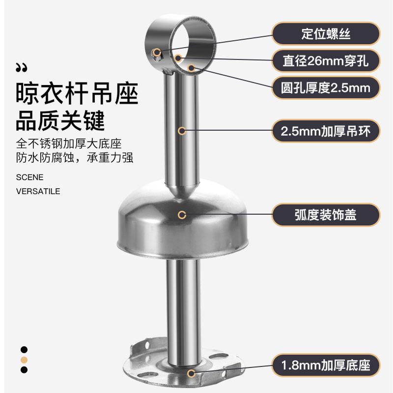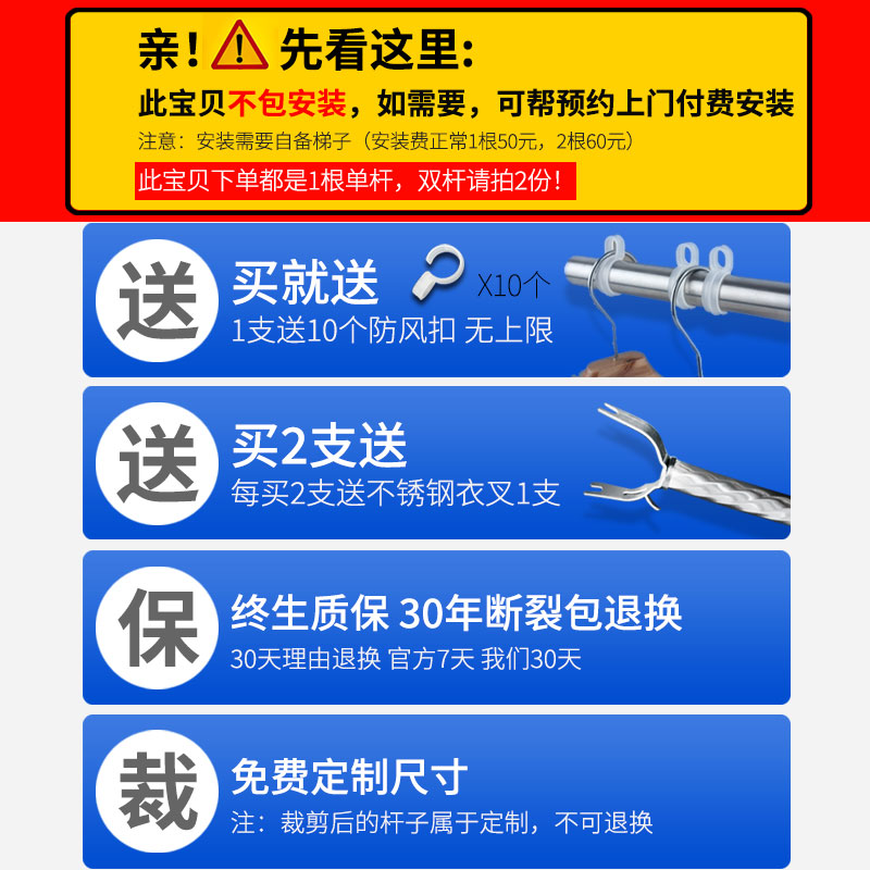 Balcony clothes drying pole top-mounted fixed clothes drying pole cool clothes pole stainless steel single pole cool clothes hanger