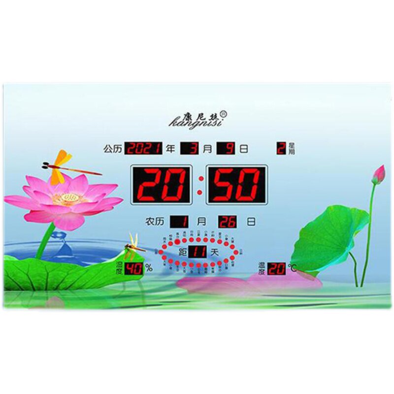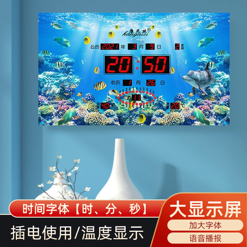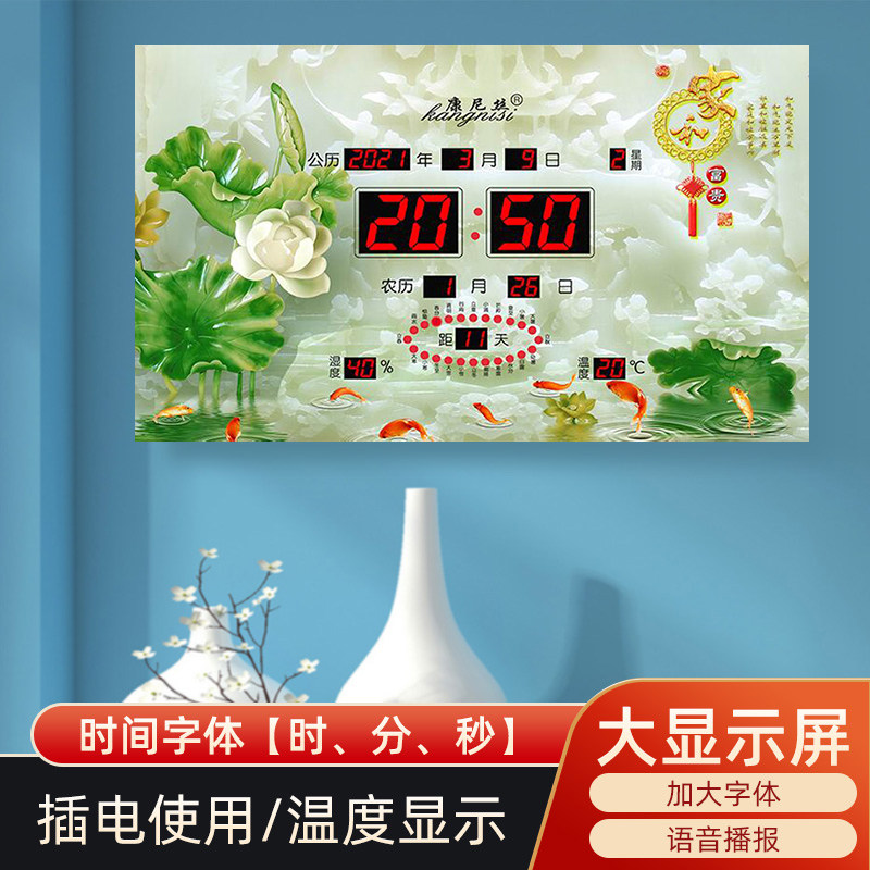 2023 New Perpetual Calendar Ice Crystal Painting Living Room Home Hanging Bell Automatic Pair Time-Plugged Electric Clock Scenery Decoration Table-Taobao