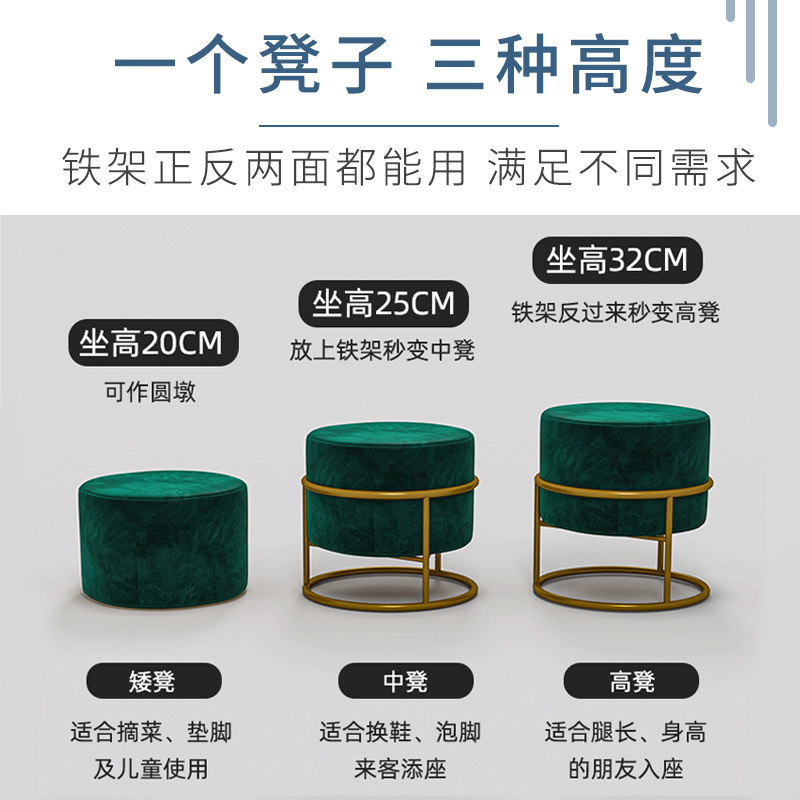 Small Stool Modern Iron Art Round Stool Home Living Room Changing Shoes Stool Net Red Light Lavish Tea Table Bench Short Bench Creativity Small Bench
