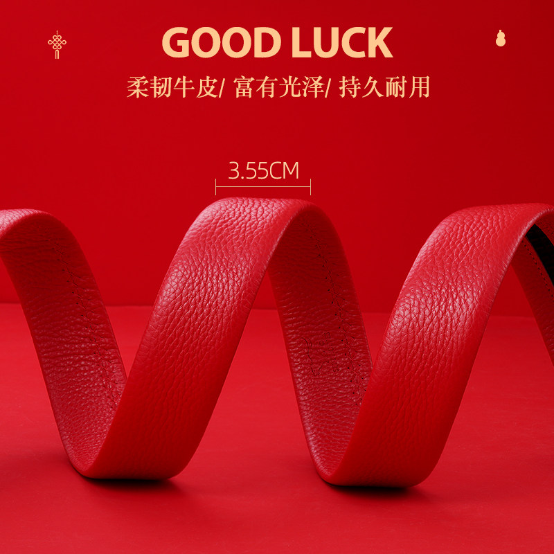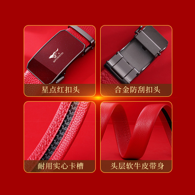 Seven Wolves Ben Year Red Belt Men Genuine Leather Automatic Buckle Belt Pants Belts Men's Tiger Year Tiger Wedding Festive