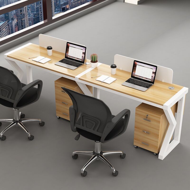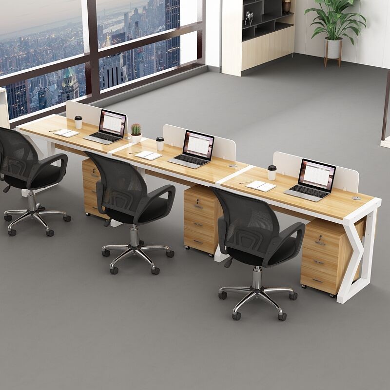 Staff desk side by side Single 2 people 3 People with single row horizontal and white screen computer working table with bezel