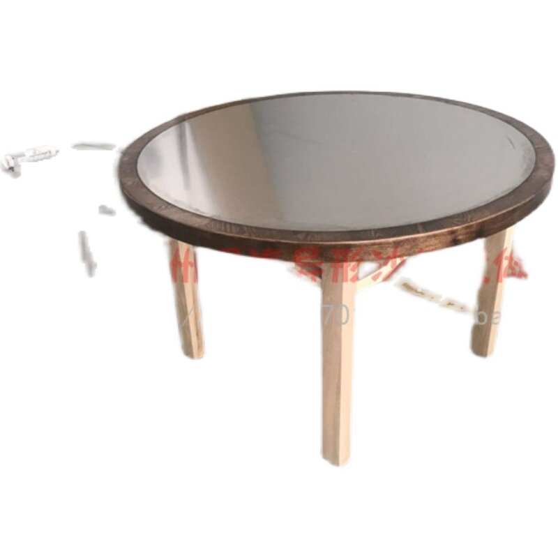 Stainless steel plate iron art solid wood anti-burn thermal insulation fire boiler Shop Snoop Exploring Frog Grilled Fish Shop Round Table Customize
