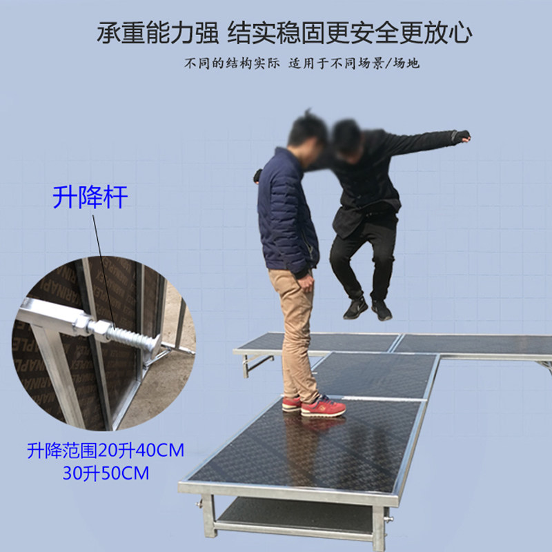 Fast-loading Rhea steel aluminum alloy wedding performance custom folding small stage shelf T plate BS1000