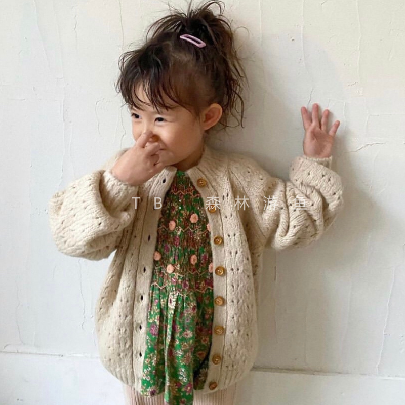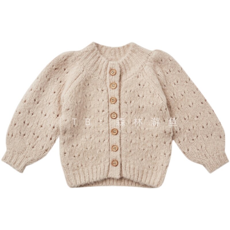 Swimming fish giant soft waxy Rylee baby girl knitted cardigan coat sweater puff sleeves hollow spring autumn winter ins