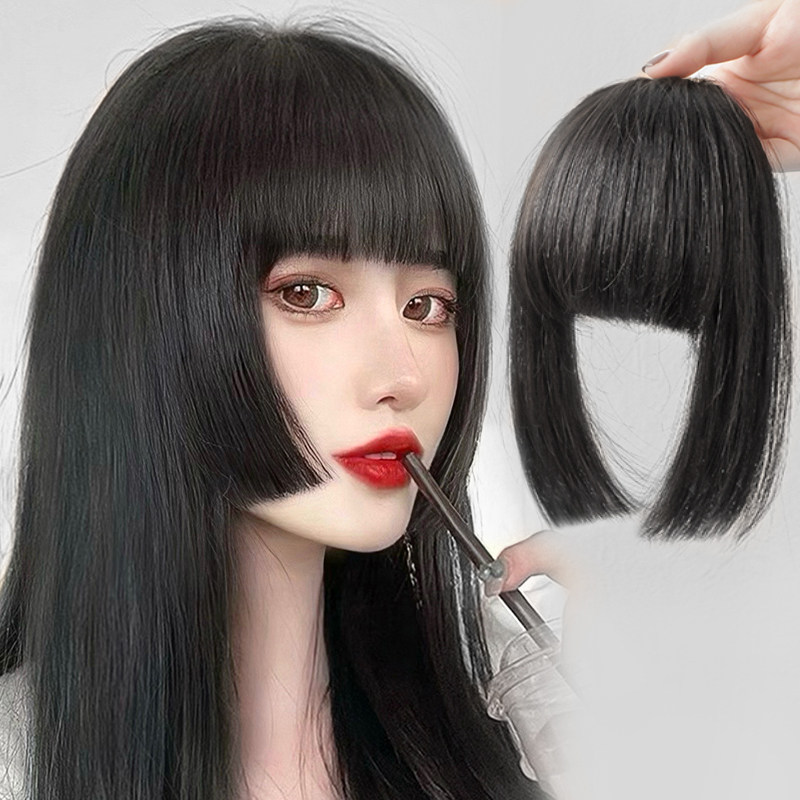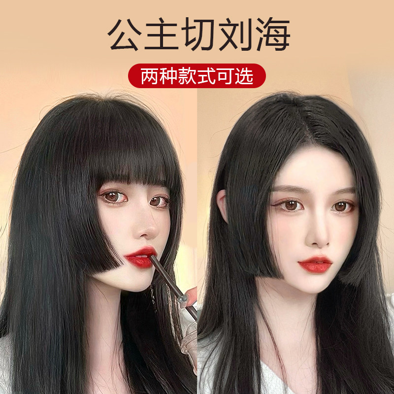 Real hair princess cut wig piece bangs wig female middle part Ji hair style fake bangs Qi bangs invisible natural forehead