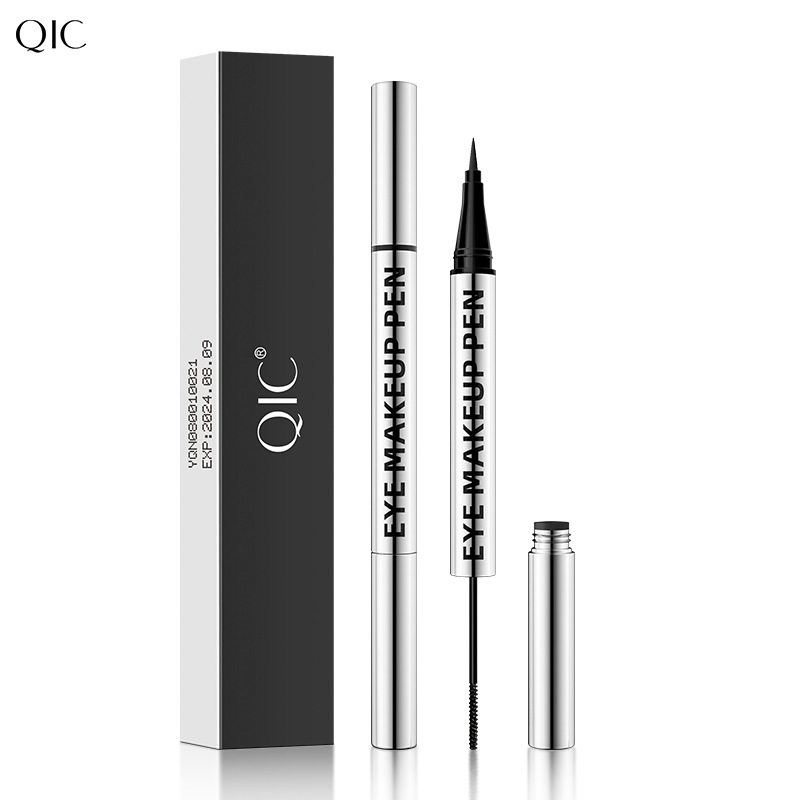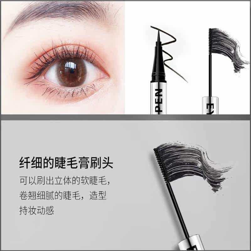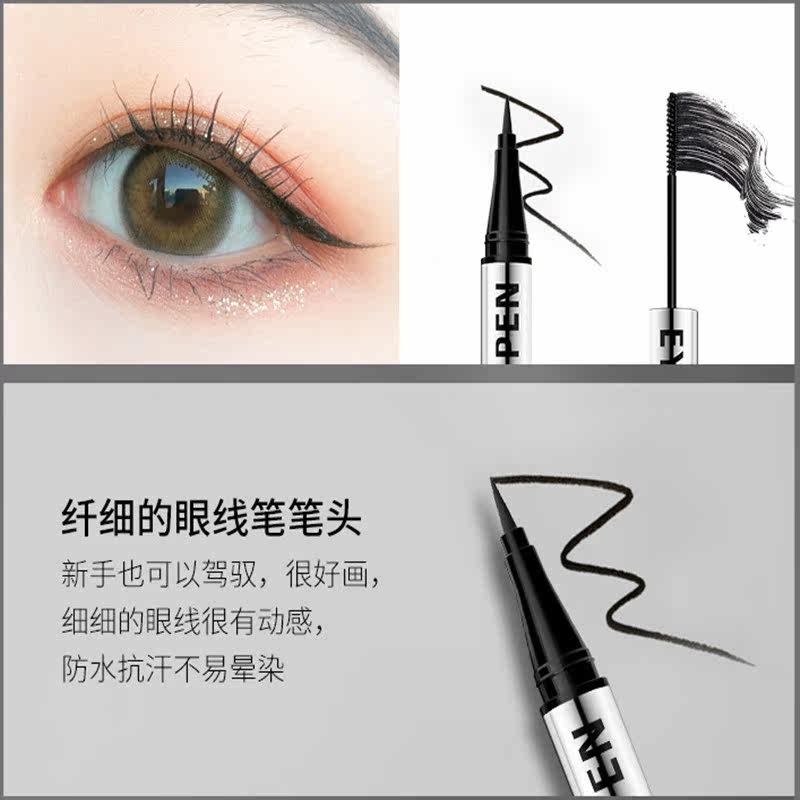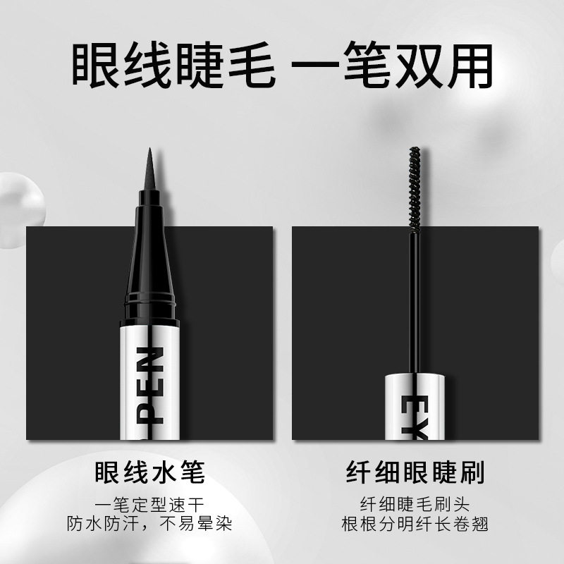 Double-ended liquid eyeliner pen waterproof and non-smudge two-in-one long-lasting slender curly ultra-fine black mascara does not take off makeup